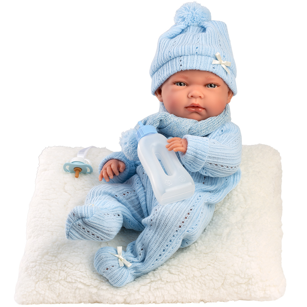 Llorens: Nico 40 cm - lalka noworodek z butelką i poduszką