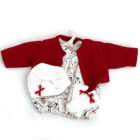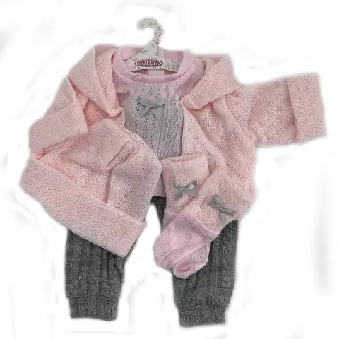 To doskonały wybór do rozszerzenia garderoby naszych 43-centymetrowych lalek Llorens – ten zestaw ubranek zawiera wspaniałą kolekcję. W siateczkowym opakowaniu znajduje się uroczy różowy sweterek z dzianinową czapką i skarpetkami, a także białe spodnie ozdobione słodkimi wzorami misia i króliczka. Ubranie idealnie pasuje na naszą 43-centymetrową lalkę Llorens lub inne lalki o odpowiednim rozmiarze – wedle uznania. Wysokiej jakości materiały i pięknie wykonane elementy garderoby z pewnością przypadną wszystkim do gustu.