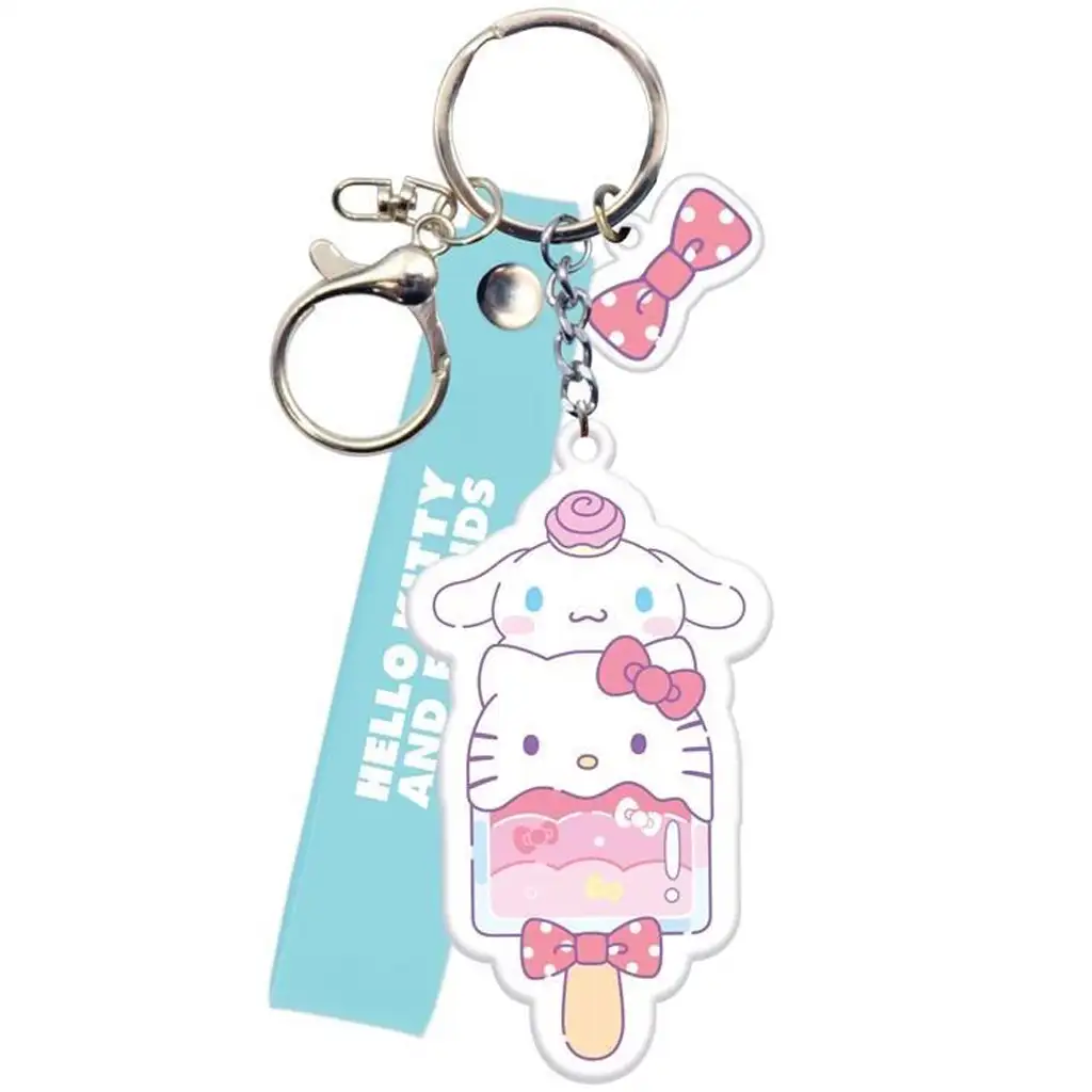 Ten breloczek do kluczy z lodem Hello Kitty and Friends wnosi prawdziwie letni nastrój do codzienności! Głównym elementem breloczka jest urocza figurka w kształcie lodu na patyku, na której Hello Kitty i Cinnamoroll pojawiają się razem w postaci wesołego, kolorowego lodowego deseru – ozdobionego czerwonymi kokardkami i pastelowymi barwami. To idealne połączenie słodyczy i kreatywności!