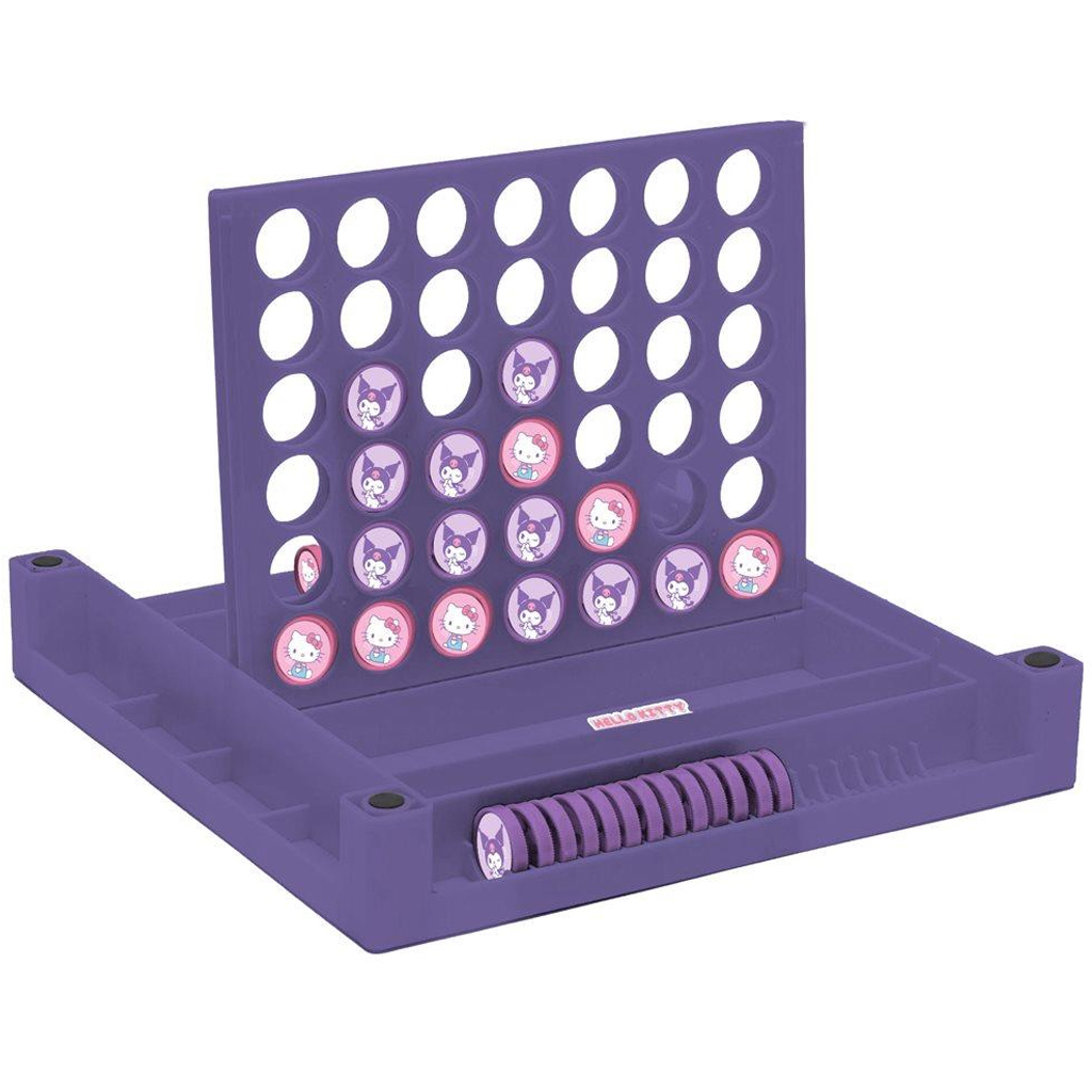Na jednej stronie gry znajduje się dobrze zniana plansza „Węże i drabiny”, gdzie dzieci poruszają się do przodu, rzucając kostką. Drabiny pomagają wspinać się w górę, a „węże” (w formie wesołych tasiemek) cofają gracza, przez co gra zawsze pełna jest niespodzianek. Druga strona to plansza do gry „Cztery w rzędzie”, gdzie celem jest jako pierwszy ułożyć cztery identyczne symbole (Hello Kitty lub Kuromi) w rzędzie poziomo, pionowo lub po przekątnej.
