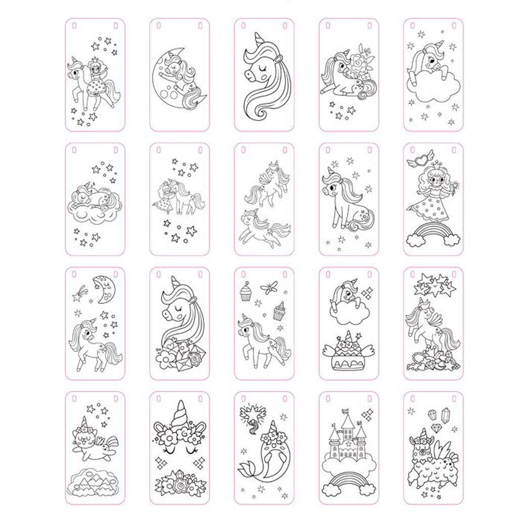 W pudełku znajduje się 20 różnych arkuszy do kolorowania o bajkowej tematyce, przedstawiających magiczne jednorożce, wróżki, zamki, chmury i tęcze. Do kolorowania dołączone są 4 kolorowe mazaki (różowy, jasnoniebieski, zielony i żółty), dzięki którym dzieci z łatwością ożywią jednorożce i bajki ze swojej wyobraźni.