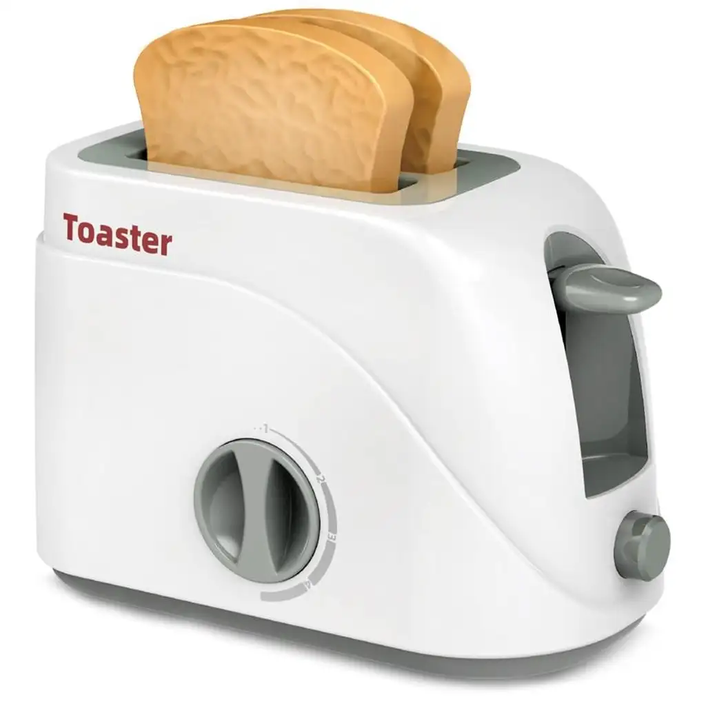 Nowoczesny toster zabawkowy z dwiema kromkami tostów