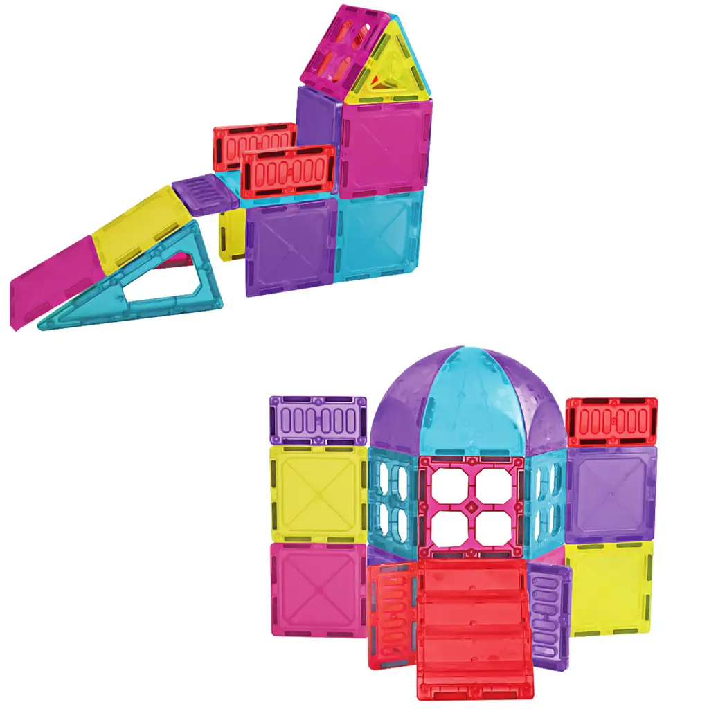 Dzięki 33-elementowemu zestawowi magnetycznych klocków Twoje dziecko z łatwością może tworzyć wyjątkowe konstrukcje, wieże, domy, a nawet kolorowe zamki. Żywe, różnokolorowe elementy o różnych kształtach łączą się ze sobą za pomocą silnych magnesów, dzięki czemu maluchy mogą je łatwo i stabilnie łączyć. Podczas zabawy rozwijają się kreatywność, percepcja przestrzenna i motoryka mała, a Twoje dziecko uczy się przez zabawę. W zestawie znajdują się elementy w kształcie kwadratu, trójkąta oraz specjalne kształty, dzięki czemu można budować na wiele sposobów. Trwałe, przezroczyste elementy w atrakcyjnych kolorach sprawiają, że zabawa jest jeszcze przyjemniejsza i zajmuje dzieci na długi czas. Idealny wybór do zabawy w domu, wspólnego rodzinnego budowania lub jako prezent.