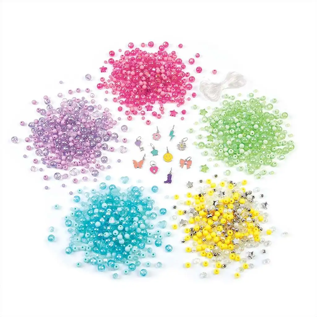 Koraliki w zestawie występują w różnych kolorach i rozmiarach, co zachęca do tworzenia niepowtarzalnych kombinacji. Dołączone urocze zawieszki – takie jak serduszka, motylki czy wesołe emotki – sprawiają, że biżuteria jest jeszcze bardziej wyjątkowa i dodaje jej odrobinę blasku. Praktyczne pudełko z przegródkami zapewnia porządek i wygodne przechowywanie koralików oraz akcesoriów, dzięki czemu po zabawie nie ma bałaganu.