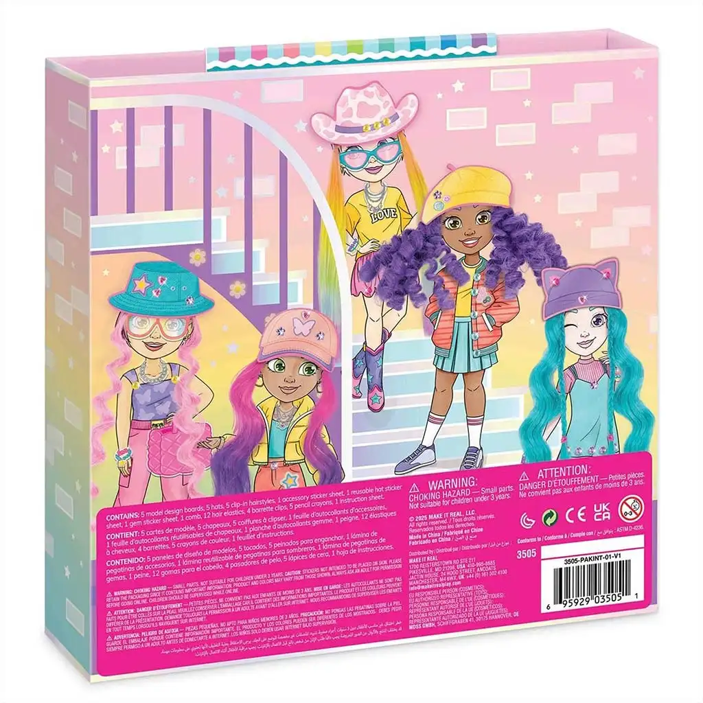 Studio stylu Make It Real Fashion Salon to idealny wybór dla każdej małej projektantki mody, która chce puścić wodze fantazji! Dzięki kreatywnemu zestawowi składającemu się z 41 elementów dzieci mogą tworzyć własne ikony stylu, kolorować, ozdabiać i wymyślać wyjątkowe fryzury dla postaci.