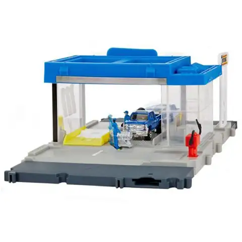 Serwis samochodowy jest przydatny w każdym mieście, ponieważ z dnia na dzień produkuje się coraz więcej samochodów. Zestaw zabawkowy stworzony przez Matchbox oprócz toru zawiera również mały samochód Chevy Silverado 1500, którym można rozpocząć zabawę. Główne elementy toru, które są ruchome, to: mechanik sprawdzający silnik, przewód powietrzny oraz podnośnik, na którym ocenia się i wymienia opony. Samochód i te elementy odzwierciedlają rzeczywistość w pomniejszonej, zabawkowej formie. Tor można połączyć z innymi miejskimi zestawami Hot Wheels Matchbox.