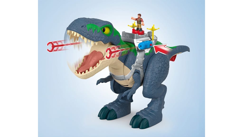 Dzieci mogą wystrzeliwać pociski z wyrzutni. Ta zabawka zapewnia ekscytującą rozrywkę, jednocześnie rozwijając zręczność i koordynację. Zestaw wyrzutni jest bezpieczny i łatwy w użyciu, dzięki czemu dzieci mogą samodzielnie cieszyć się zabawą. Źródło: MattelNaciśnij dźwignię znajdującą się na końcu ogona, aby figurka ugryzła mniejsze zabawki! Ta funkcja sprawia, że zabawa staje się jeszcze bardziej ekscytująca i interaktywna, ponieważ dzieci mogą w ten sposób łatwo odgrywać sceny polowania lub ataku. Mechanizm zaprojektowany przez firmę Mattel jest łatwy w użyciu i czyni zabawę jeszcze bardziej atrakcyjną.