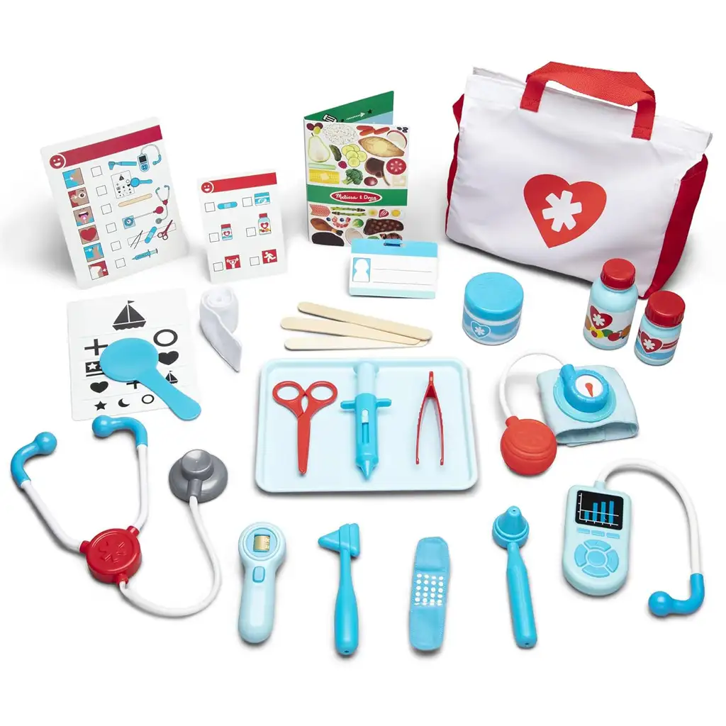 Jeśli Twoje dziecko interesuje się światem lekarzy albo lubi pomagać i opiekować się innymi, to zestaw lekarza Melissa & Doug z torbą będzie dla niego idealnym wyborem! Ten bogato wyposażony, 25-częściowy zestaw medyczny daje małym lekarzom szansę, by w realistycznym otoczeniu ćwiczyli leczenie – wszystko to w bezpieczny i zabawny sposób.