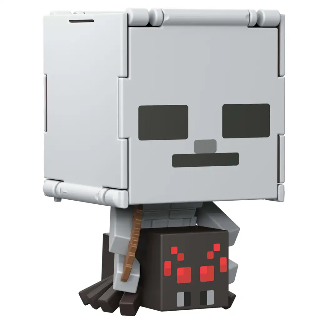 Świat Minecrafta możesz teraz przeżyć w zupełnie nowej formie dzięki transformującym figurkom Flippin’ Figs! Ta wyjątkowa zabawka 2 w 1 przynosi jednocześnie postacie Jeźdźca Pająka i Pająka, które w łatwy sposób możesz przekształcać jedna w drugą za pomocą jednego ruchu. Wystarczy otworzyć panele głowy w kształcie sześcianu, zablokować je i od razu pojawi się nowa figurka.