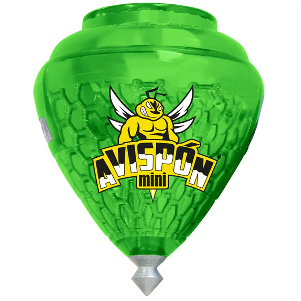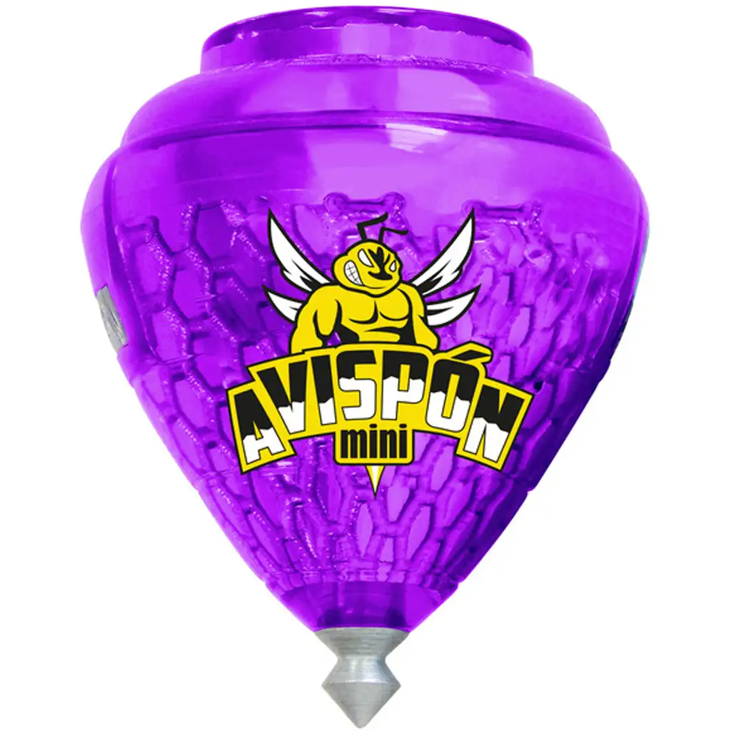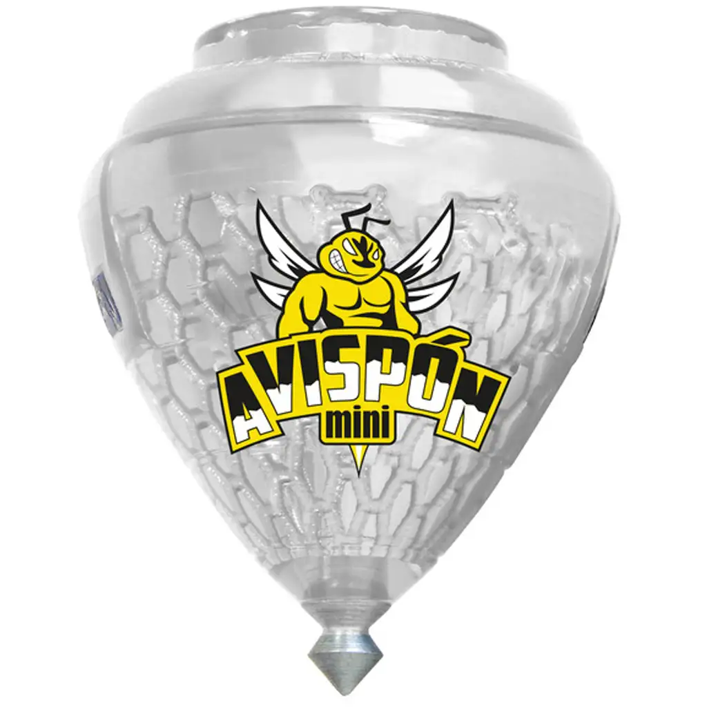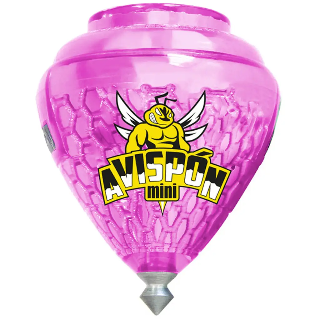Mini Avispón Peonza to wytrzymały bączek wykonany z plastiku i metalu, który dzięki swoim rozmiarom jest idealny także dla mniejszych rączek. Jego kształt zapewnia stabilne obracanie się, a ostry metalowy czubek gwarantuje długotrwały obrót na każdej gładkiej powierzchni. Specjalna, przezroczysta plastikowa obudowa, motyw osy oraz intensywne kolory (niebieski, czerwony, zielony, fioletowy, przezroczysty, żółty, różowy itd.) sprawiają, że zabawka jest jeszcze bardziej atrakcyjna – wybierz swój ulubiony kolor lub zbierz je wszystkie!