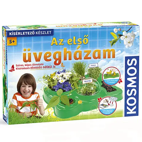 Dzięki naukowej zabawce „Moja pierwsza szklarnia” dzieci mogą postawić pierwsze kroki w fascynującym świecie botaniki. Kolorowy, ilustrowany przewodnik, znajdujący się w zestawie, jest zrozumiały i użyteczny nawet dla dzieci, które jeszcze nie potrafią czytać. Podczas ekscytujących eksperymentów dzieci mogą poznawać procesy zachodzące w przyrodzie. Mogą sadzić kwiaty oraz zioła, a poprzez proste eksperymenty obserwować, jak rośliny się rozwijają. Dzięki kreatywnym narzędziom i wskazówkom dowiedzą się, jak wiele można stworzyć z darów natury!