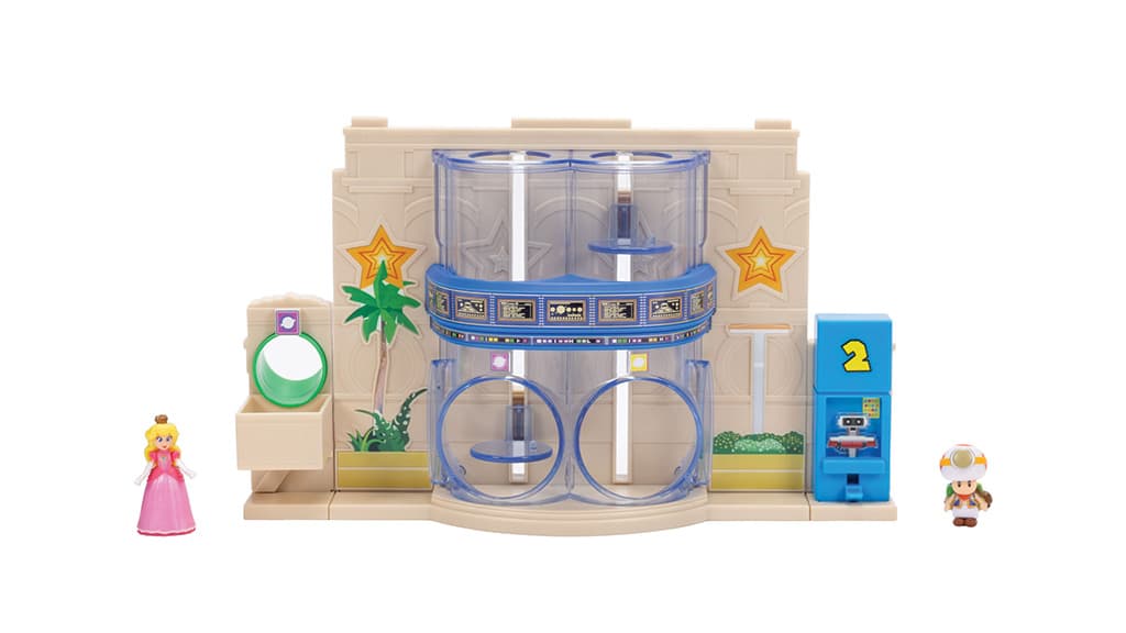 Rozpocznij nową, ekscytującą przygodę z Super Mario dzięki temu zestawowi do zabawy! Dzięki windom znajdującym się z tyłu Księżniczka Peach oraz Kapitan Toad mogą podróżować w górę i w dół przez przezroczysty tunel. Zestaw zawiera magiczną rurę-zjeżdżalnię oraz panel z R.O.B., dzięki czemu ten komplet jest idealnym wprowadzeniem do międzygalaktycznej zabawy. Odkrywaj różne poziomy i przeżywaj magiczne chwile ze świata Super Mario razem z przyjaciółmi lub samodzielnie!