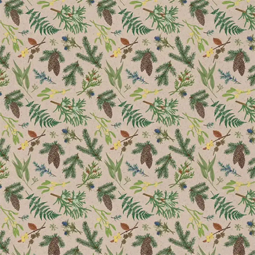 Papier do pakowania Green Grass z wzorem szyszek sosny 100x70 cmPapier do pakowania Green Grass z wzorem szyszek sosny 100x70 cm