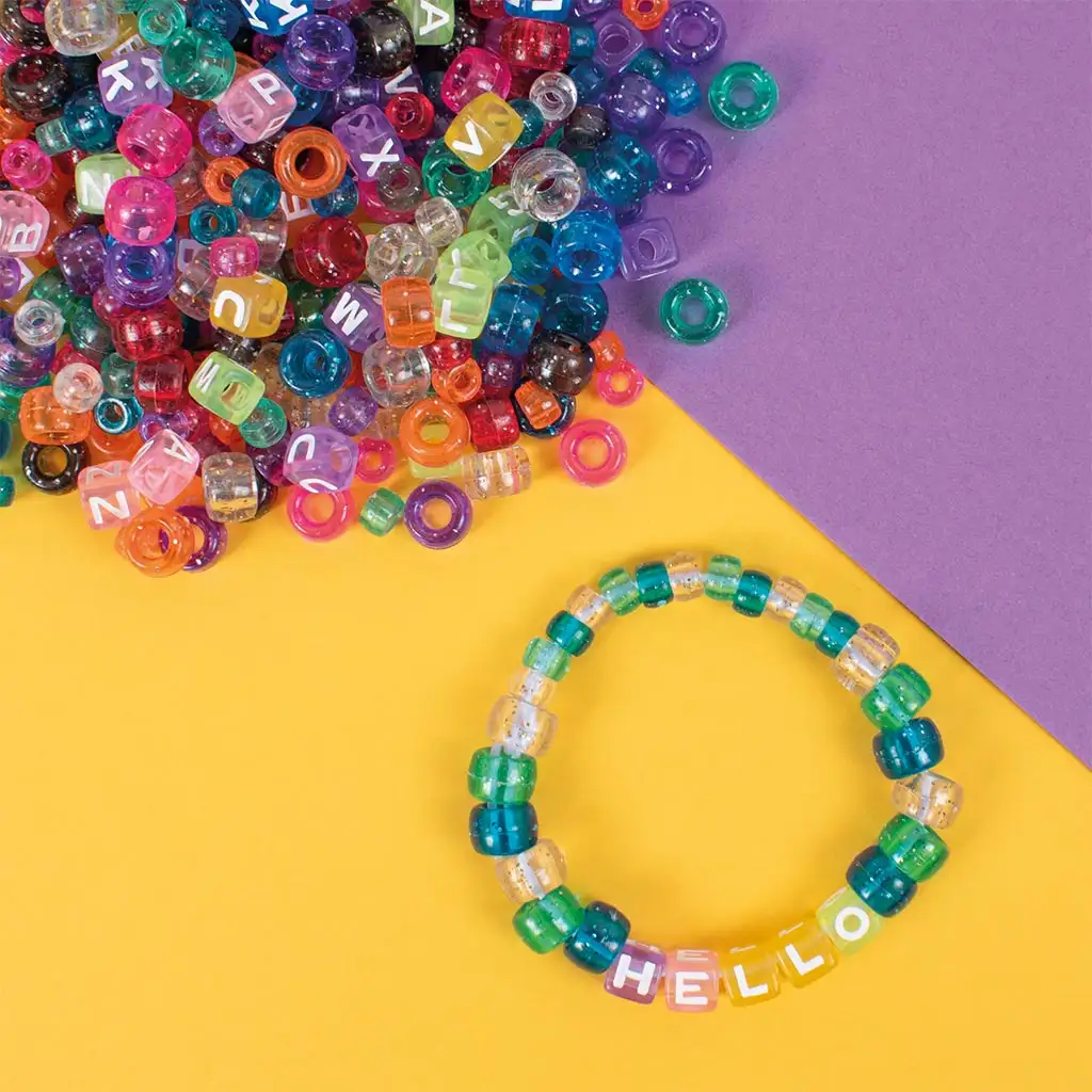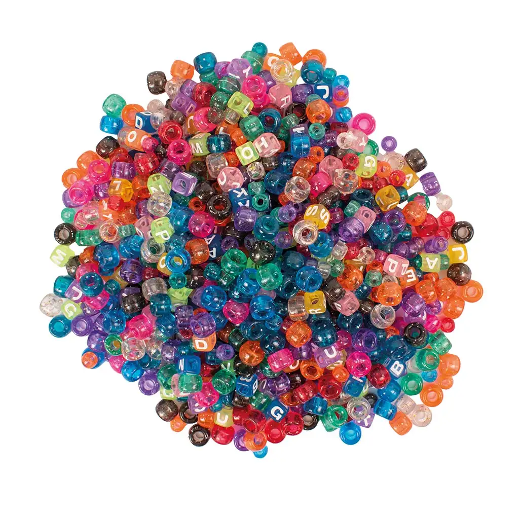 PlayBox: Kolorowy zestaw koralików do nawlekania w kształcie walca i kostki z literkami - 1000 sztuk.PlayBox: Kolorowy zestaw koralików do nawlekania w kształcie walca i kostki z literkami - 1000 sztuk.