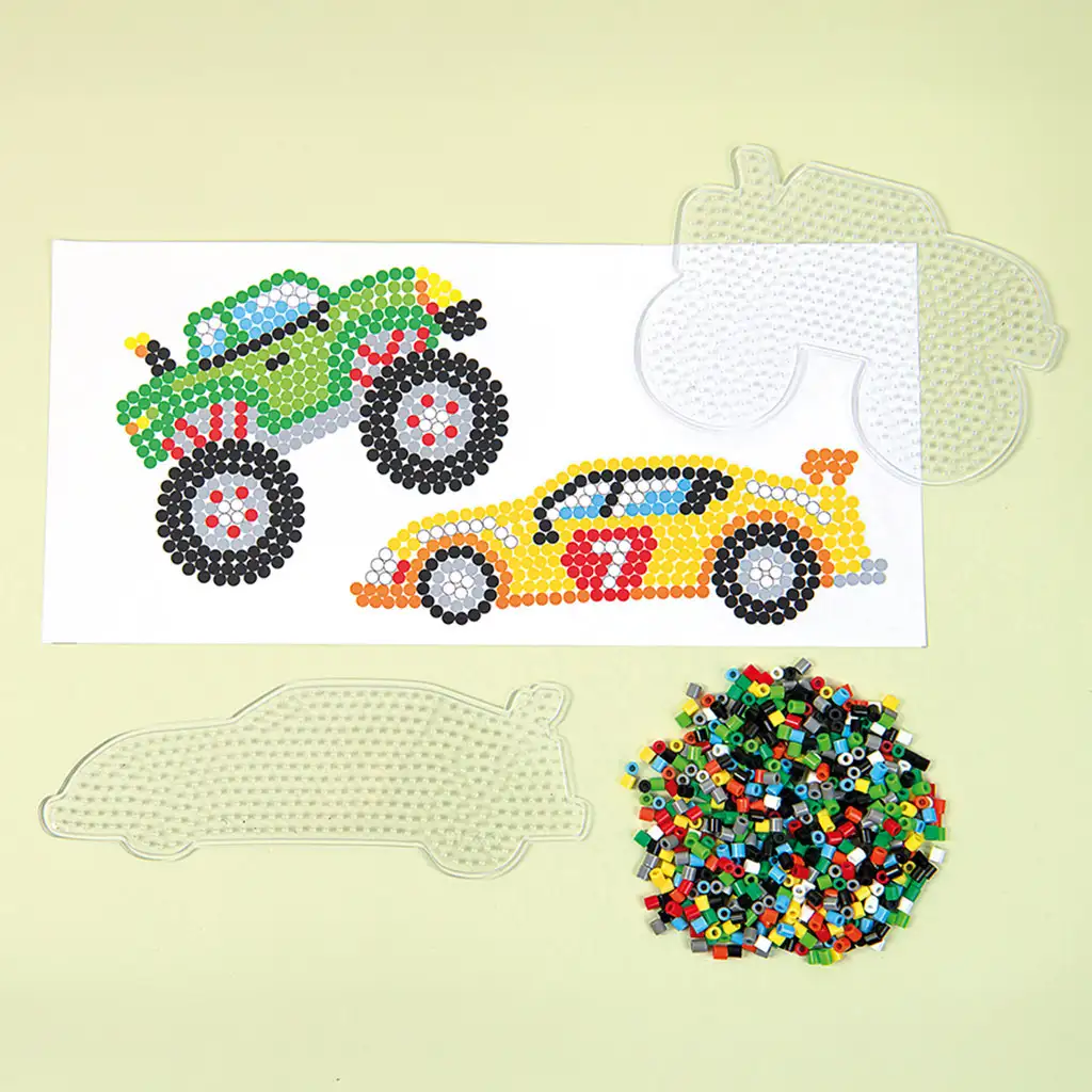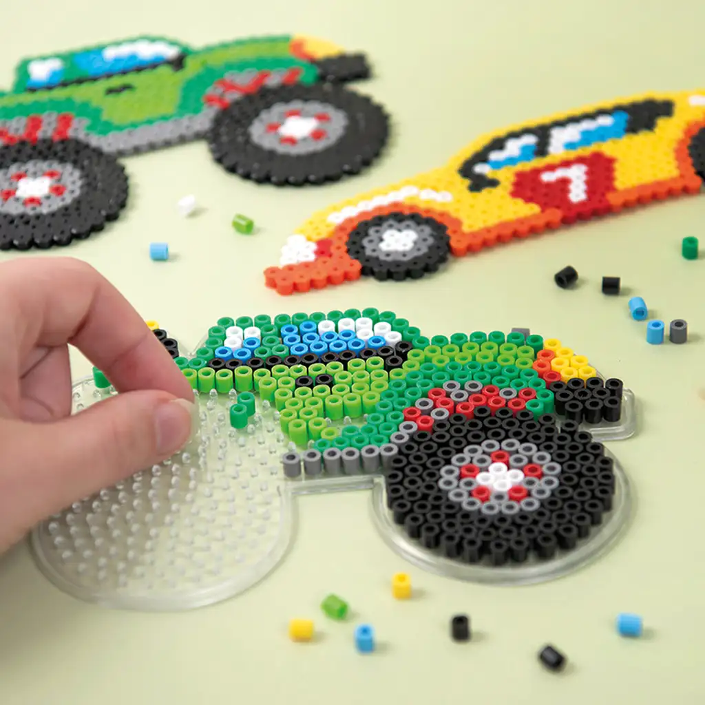 Układanie koralików rozwija koncentrację, zdolności manualne oraz rozpoznawanie kolorów, a dzieci uczą się podczas zabawy. Koraliki łatwo umieszcza się na specjalnych podkładkach, a następnie – z pomocą osoby dorosłej – utrwala się prasowaniem, dzięki czemu powstają trwałe, twarde figurki pojazdów, które można podarować w prezencie lub wykorzystać jako dekorację.