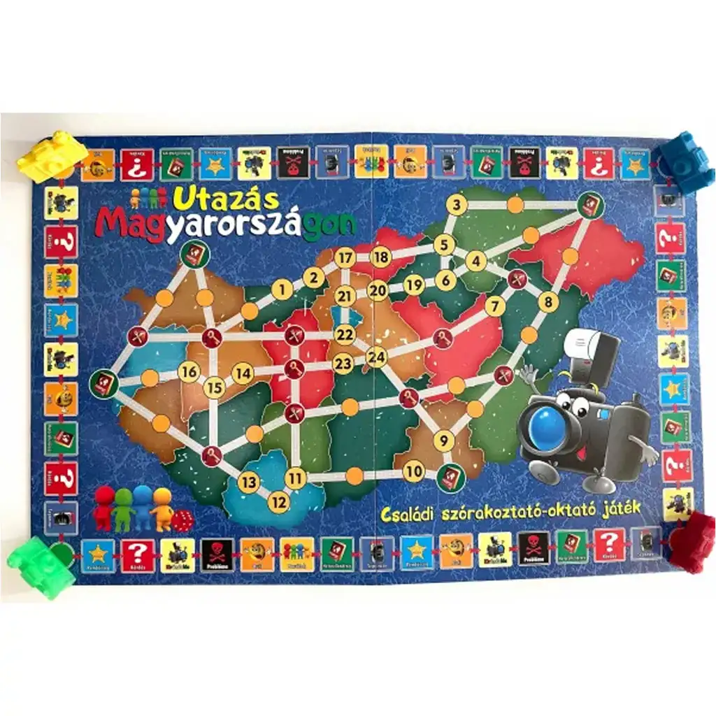 Kolorowa plansza przedstawia mapę Węgier z różnorodnymi trasami i stacjami, po których gracze mogą się poruszać. W trakcie rozgrywki karty pytań pozwalają poszerzyć wiedzę – na graczy czeka aż 60 pytań i 240 odpowiedzi, dzięki czemu każda runda staje się wyjątkowa i pełna emocji. Tematy są urozmaicone: geografia, zabytki, tradycje, sławni ludzie i wiele innych ciekawostek.