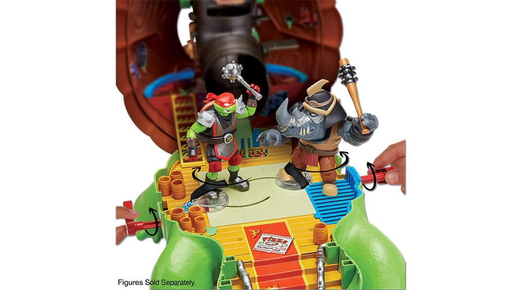 Zestaw do zabawy jest kompatybilny z innymi figurkami akcji TMNT firmy Playmates Toys. Oznacza to, że dzieci i kolekcjonerzy mogą swobodnie łączyć różne figurki i akcesoria, dzięki czemu mogą przeżywać jeszcze bardziej ekscytujące i urozmaicone chwile zabawy. Zestaw to doskonały wybór dla wszystkich, którzy kochają świat Wojowniczych Żółwi Ninja i chcą powiększyć swoją kolekcję.Dzieci mogą odtworzyć sceny znane z bajek o Wojowniczych Żółwiach Ninja za pomocą tego interaktywnego zestawu do zabawy. Ten zestaw daje możliwość zanurzenia się w świecie ulubionych bohaterów, rozwijania kreatywności i wyobraźni, a jednocześnie przeżywania ekscytujących przygód. Dzięki szczegółowemu wykonaniu i ruchomym elementom dzieci mogą wymyślać własne historie i ponownie przeżywać najbardziej pamiętne momenty z serialu animowanego.