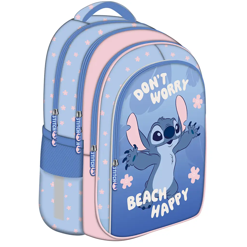 Plecak szkolny Disney Stitch BPL58 o wymiarach 40x29x19 cm to idealny wybór dla każdego małego ucznia, który jest fanem Stitcha i lubi wesoły, oryginalny wygląd. Jasnoniebieskie i różowe odcienie torby, sympatyczna postać Stitcha oraz napis „Don’t worry, beach happy” z pewnością wywołają uśmiech na twarzy Twojego dziecka każdego szkolnego poranka. Urocze motywy kwiatowe czynią plecak jeszcze bardziej słodkim i zabawnym.