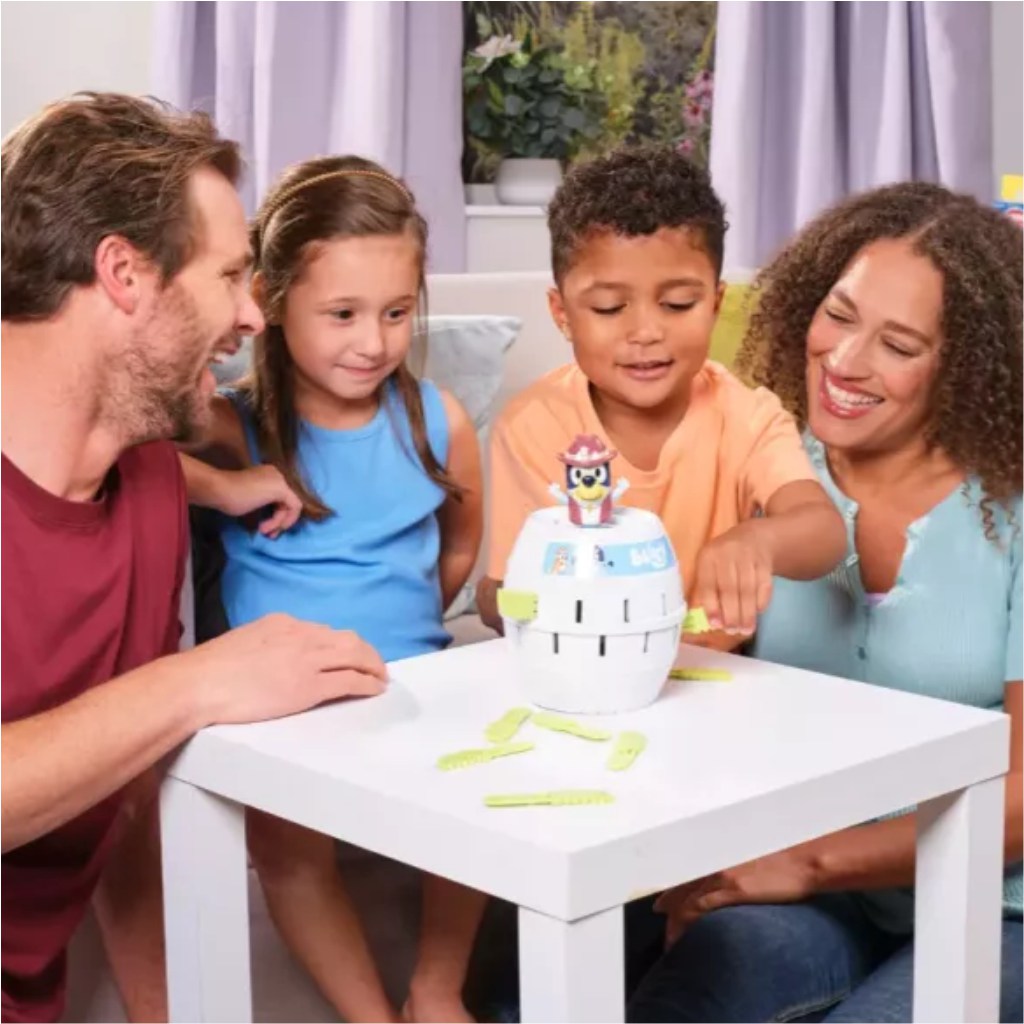 Pop Up: Bluey to zabawna i ekscytująca gra rodzinna, która przynosi dzieciom i dorosłym radosny świat popularnej bajki Bluey. W trakcie gry gracze na przemian wkładają do beczki Bluey patyczki w kształcie krokodyla, a wszyscy z niecierpliwością czekają, kiedy wyskoczy Bluey. Nieoczekiwany moment pełen jest śmiechu i emocji, dzięki czemu każda rozgrywka jest wyjątkowym przeżyciem.