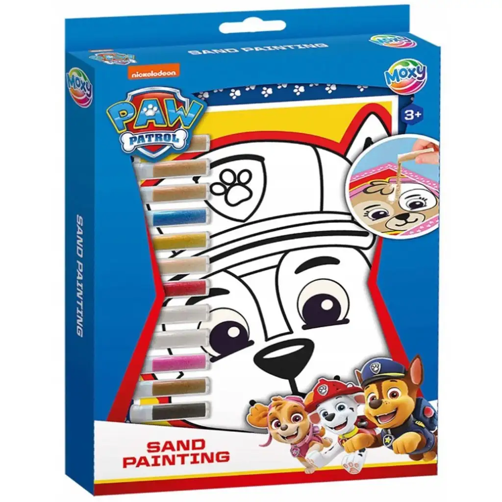 Zestaw zawiera 4 wcześniej zadrukowane, samoprzylepne obrazki z najpopularniejszymi bohaterami Psiego Patrolu, takimi jak Chase, Skye czy Marshall. Usuwając warstwy z obrazków i posypując je odpowiednim kolorem piasku, można stworzyć piękne, szczegółowe i błyszczące obrazki, które mogą nawet ozdobić ścianę dziecięcego pokoju.
