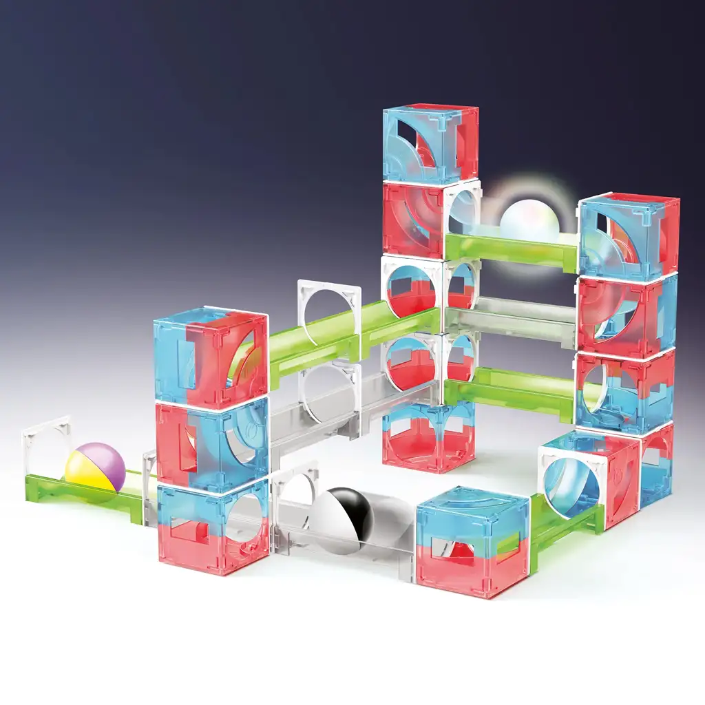 Zestaw konstrukcyjny z 70 kolorowymi, przezroczystymi elementami do budowy toru kulkowego