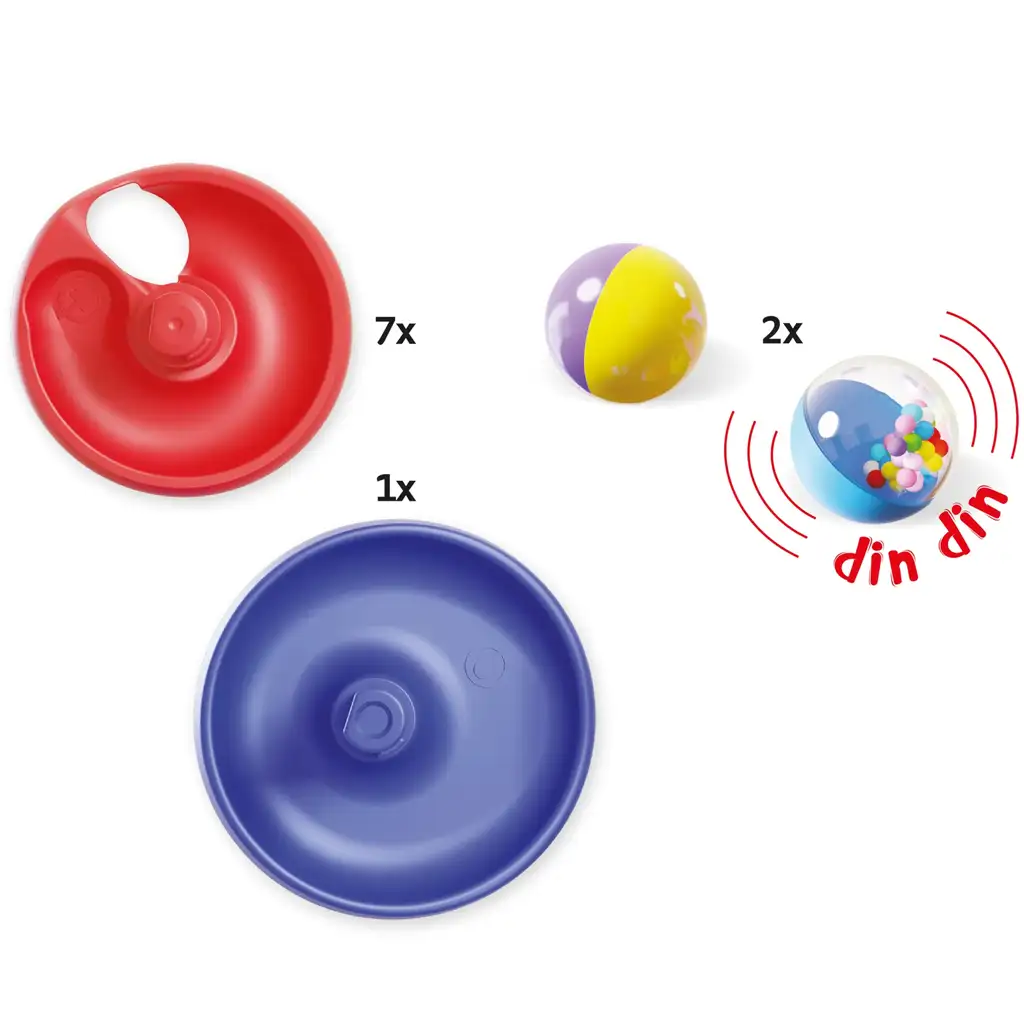Bawiąc się, maluchy doświadczają, jak przedmioty poruszają się pod wpływem grawitacji i z radością obserwują, jak piłka coraz szybciej toczy się przez kolejne poziomy. Zabawka jest cicha, ale na tyle ekscytująca, by dzieci chętnie do niej wracały raz po raz – co więcej, dźwięk grzechotki nie jest uciążliwy, lecz przyjemnie przyciąga uwagę.
