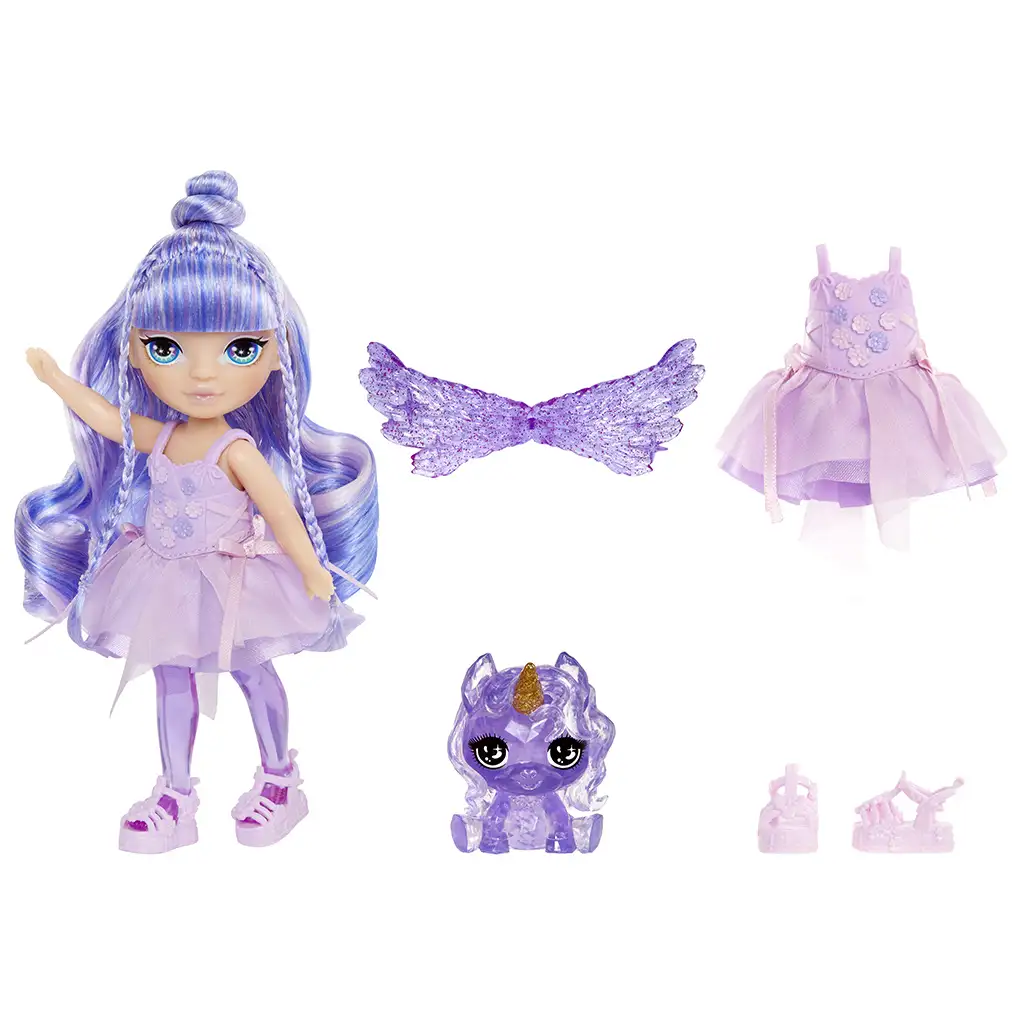 Wejdź do magicznego świata Rainbow High Littles razem z Amethyst Willow, królową fioletowych odcieni! Ta urocza, mała wróżka jest częścią serii Rainbow Fantasy Fairies i stanowi prawdziwą gratkę dla dzieci, które uwielbiają bajki, blask oraz kreatywne odgrywanie ról.