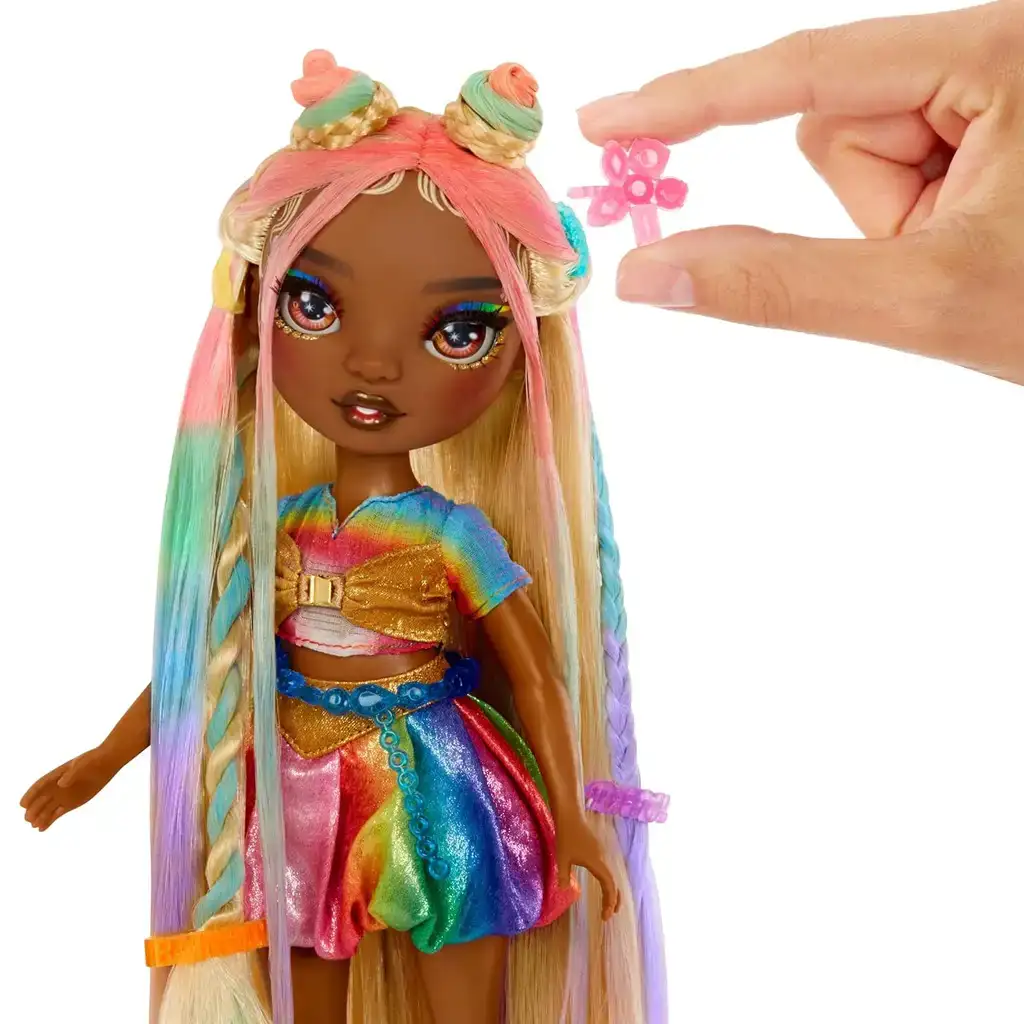 Zestaw Rainbow High Lalka do stylizacji włosów i kredy do włosów to fantastyczna, kreatywna zabawka, która daje dzieciom możliwość tworzenia własnych, unikalnych fryzur – nie tylko lalce, ale także sobie samym!