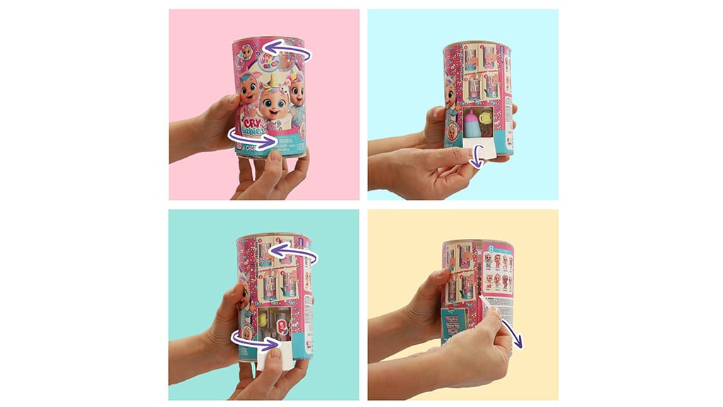 Lalki posiadają klasyczną funkcję płaczu Cry Babies. Maluchy mogą nakarmić lalkę butelką, dzięki czemu pojawiają się prawdziwe łzy. Wykorzystując te łzy, można odkryć magiczny medalion, który ujawnia się pod wpływem wody i który można następnie założyć lalce lub na własną bransoletkę. To wyjątkowe doświadczenie sprawia, że zabawa staje się jeszcze bardziej ekscytująca i magiczna, ponieważ dzieci za każdym razem mogą odkryć nową niespodziankę z lalkami Cry Babies.