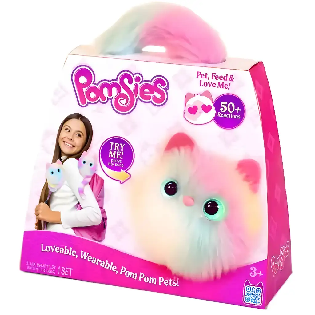 Wyjątkowość Pomsies polega na tym, że dzięki elastycznemu ogonkowi łatwo można go przymocować do nadgarstka, plecaka lub nawet kierownicy roweru – dlatego zawsze może być blisko dziecka. Zwierzaczek odpowiada ponad 50 różnymi reakcjami, dzięki czemu zawsze okazuje, czy jest szczęśliwy, głodny, śpiący lub pragnie miłości. Kolor oczu pokazuje jego emocje, co sprawia, że troska o niego staje się prawdziwą, radosną nauką przez zabawę.