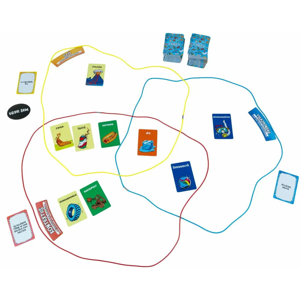 Halmazállapot to dowcipna, kolorowa gra imprezowa gwarantująca mnóstwo śmiechu, w której najważniejsza jest kreatywność, umiejętność kojarzenia oraz logika. Podczas gry masz do dyspozycji trzy zbiory oznaczone kolorowymi obręczami – twoim celem jest odgadnąć, według jakiej zasady dane przedmioty zostały do nich przypisane. Ale uważaj – obręcze nachodzą na siebie, a ich przecięcia mogą ukrywać nowe, bardziej złożone reguły!
