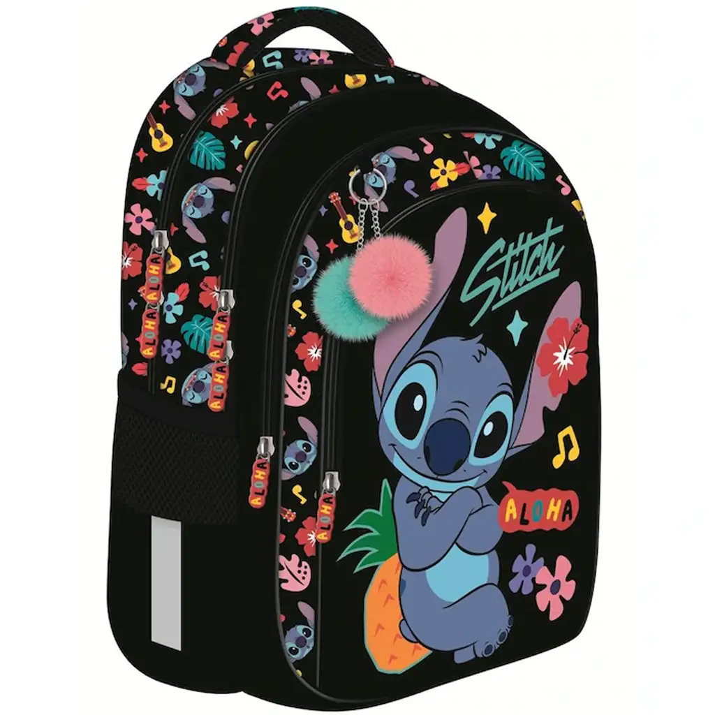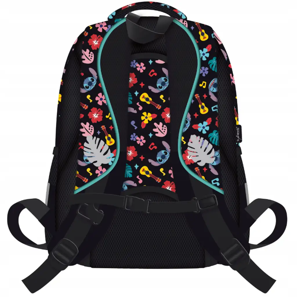 Plecak szkolny Stitch Aloha Extra to doskonały wybór dla każdego ucznia szkoły podstawowej, który kocha świat Disneya, a szczególnie Sticha! Ten plecak z czarną bazą i kolorowymi wzorami jest nie tylko stylowy, ale także niezwykle praktyczny i wygodny – dlatego stanowi idealnego towarzysza na codzienne szkolne dni. Tropikalne motywy na plecaku, kwiaty, ukulele, ananasy i oczywiście uśmiechnięty Stitch sprawiają, że każdy poranek staje się weselszy.