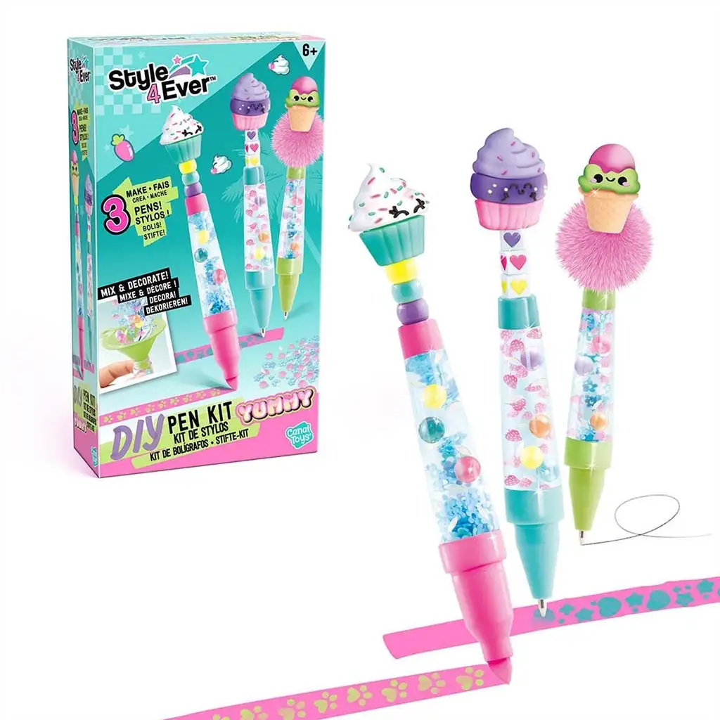 Uwolnij kreatywność swojego dziecka dzięki zestawowi Style 4 Ever DIY – Zrób to sam: Zestaw do tworzenia własnych długopisów, który nie tylko zapewnia świetną zabawę, ale także rozwija umiejętności! Ten magiczny zestaw pozwala dzieciom stworzyć własne, niepowtarzalne długopisy z uroczymi dekoracjami w kształcie zwierzątek lub motywami słodkości. W zestawie znajdują się wszystkie niezbędne elementy do stworzenia trzech całkowicie personalizowanych długopisów, w tym kolorowe koraliki, brokaty, puszyste ozdoby oraz wyjątkowe końcówki długopisów, takie jak główka kota, lód czy motyw łapki.