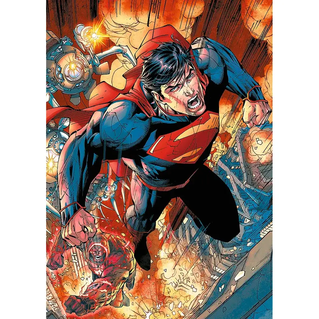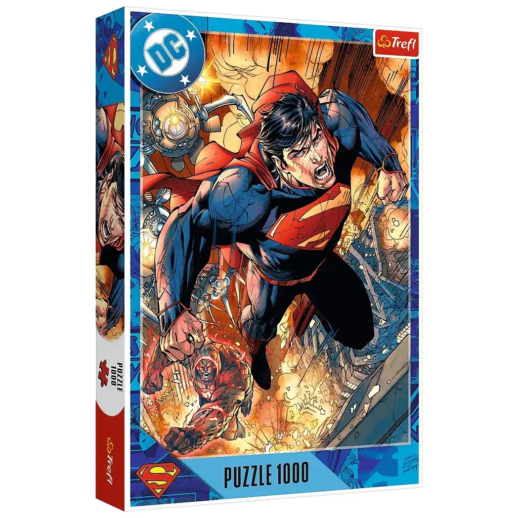 To puzzle Trefl składające się z 1000 elementów to prawdziwa gratka dla miłośników komiksów, ponieważ przedstawia legendarnego Supermana w klasycznej, dynamicznej komiksowej grafice. W centrum sceny znajduje się Superman, który walczy ze swoimi wrogami i przebija się przez wszystko, co stanie mu na drodze. Siła, odwaga i bohaterstwo stają się namacalne na tym imponującym obrazie, który oddaje istotę uniwersum DC.