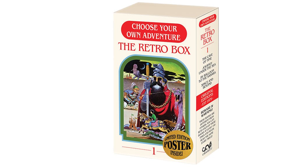Ten zestaw zawiera klasyczne książki w pudełku prezentowym przywołującym klimat lat 1980-as évek. W paczce znajdziesz The Cave of Time (Jaskinia czasu), Journey Under the Sea (Podróż pod morze), Space and Beyond (Kosmos i dalej) oraz By Balloon to the Sahara (Balonem na Saharę).