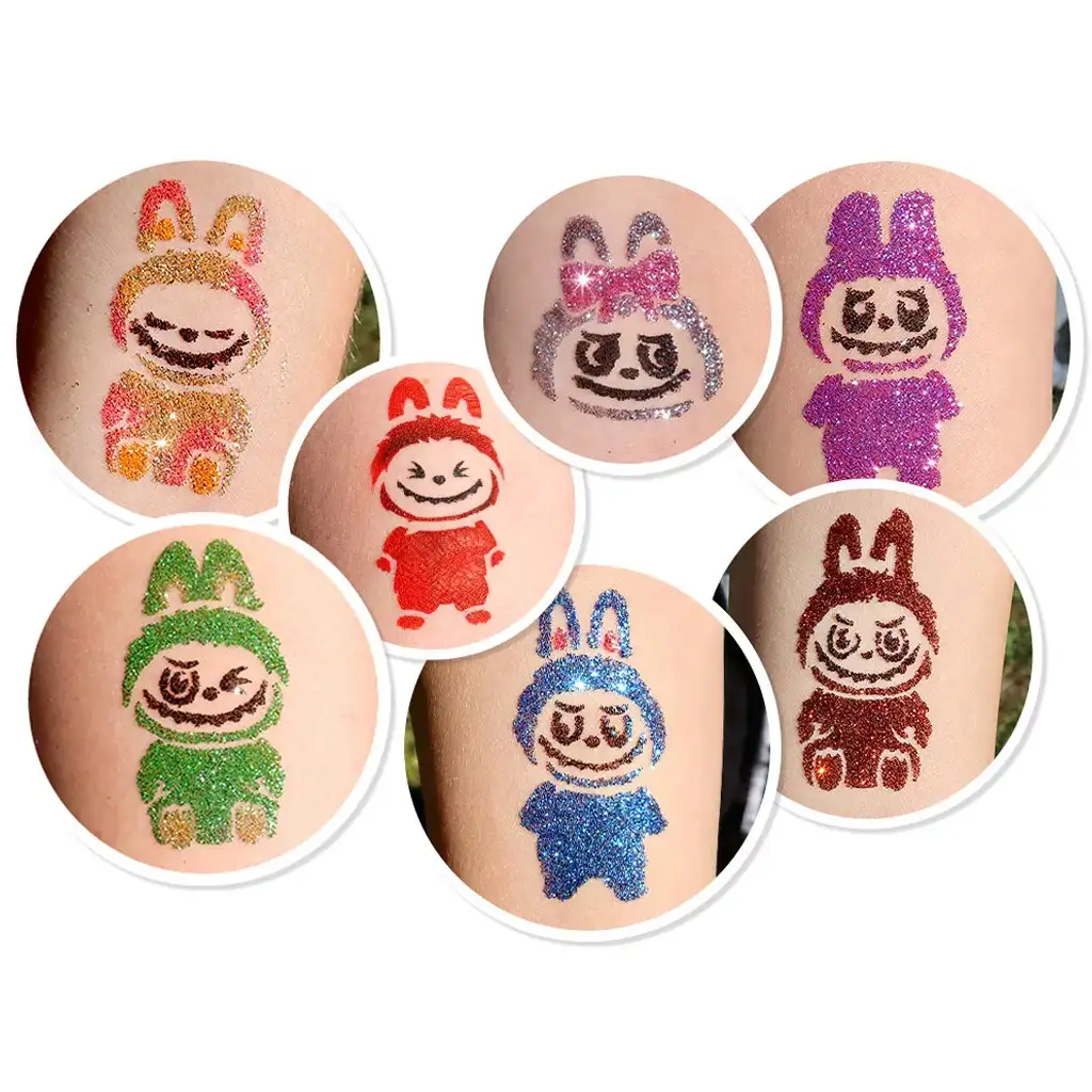 Używanie ich jest wyjątkowo łatwe: wystarczy odkleić szablon, przykleić do skóry, nałożyć klej i posypać wybranym brokatem. Po kilku chwilach masz własnego, kolorowego i błyszczącego Labubu! Jeśli będziesz delikatnie obchodzić się z szablonami, możesz ich używać wielokrotnie, dzięki czemu pojawią się przy niejednej kreatywnej okazji.