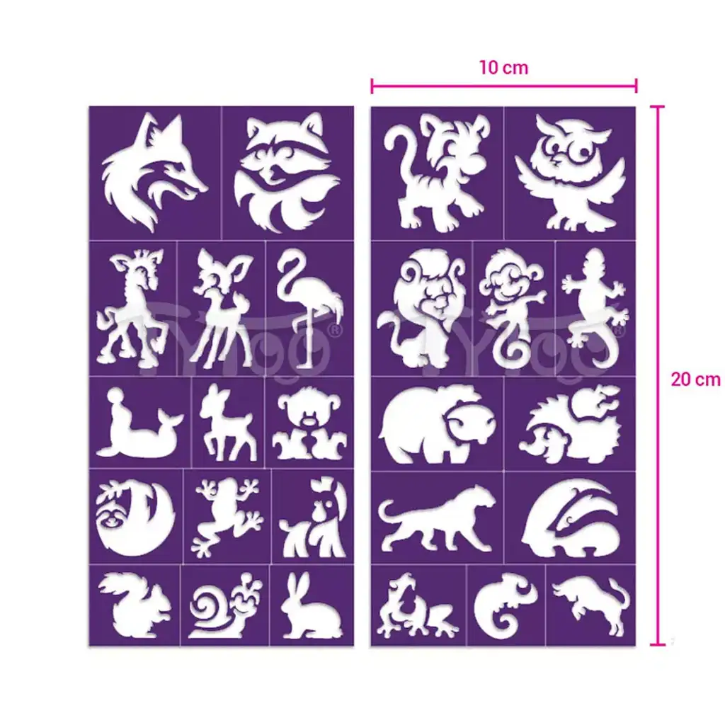TyToo: Zestaw szablonów do brokatowych tatuaży Leśne Zwierzęta 26 szt.