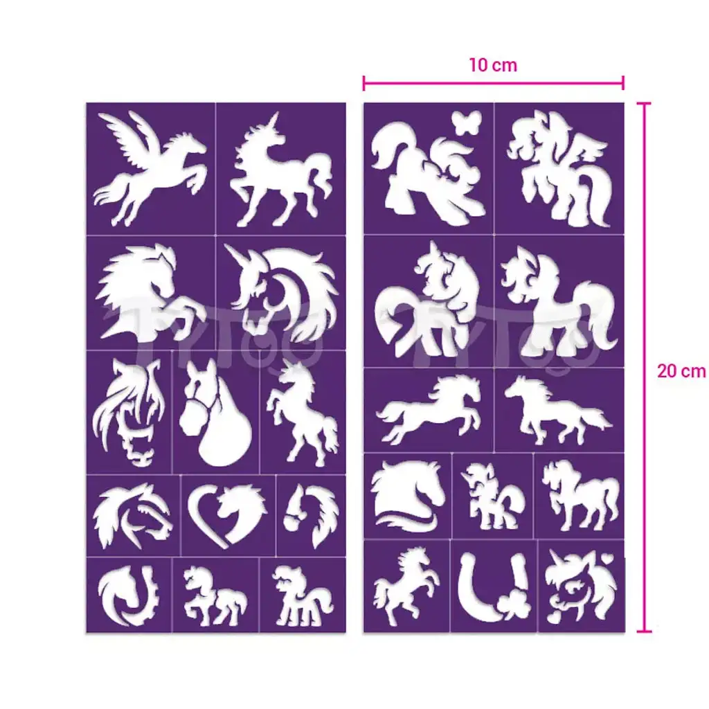 TyToo: Zestaw szablonów do tatuażu brokatowego konie i kucyki 25 szt.TyToo: Zestaw szablonów do tatuażu brokatowego konie i kucyki 25 szt.
