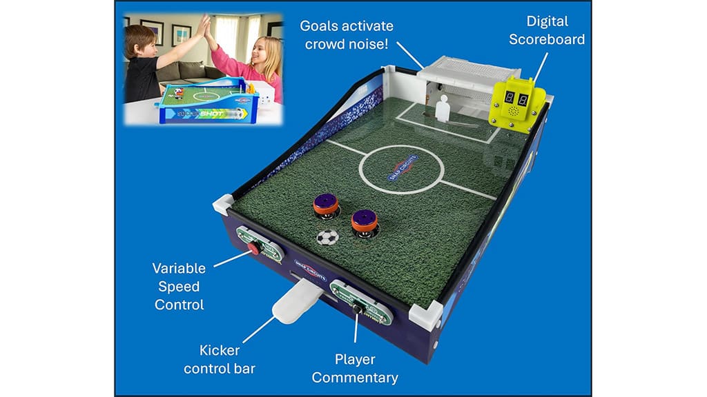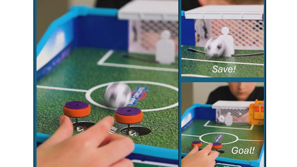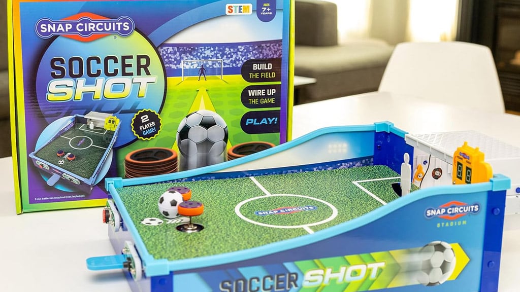 Prawdziwy przełom w nauce praktycznej stanowi Snap Circuits Soccer Shot, który daje dzieciom możliwość rozwijania umiejętności STEM podczas rywalizacji z przyjacielem w grze stołowej w rzuty karne. Dzieci muszą samodzielnie zbudować całą elektroniczną grę od podstaw, dzięki czemu zdobywają podstawową wiedzę inżynierską i mechaniczną, tworząc wewnętrzne obwody gry. Po złożeniu gry jeden z graczy celuje i kopie piłkę, podczas gdy drugi broni bramki jako bramkarz. Zwycięzcą zostaje ten, kto pierwszy zdobędzie dziewięć goli. Ta gra nie tylko zapewnia rozrywkę, ale także rozwija umiejętność rozwiązywania problemów, kreatywność i pracę zespołową, podczas gdy dzieci w zabawny sposób poznają podstawy elektroniki i nauk inżynieryjnych.