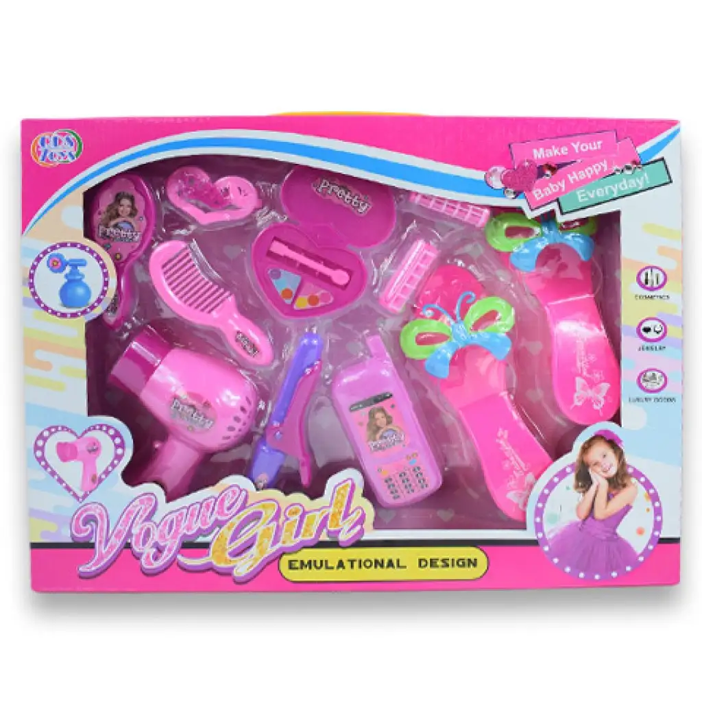 Vouge Girl: 10-częściowy zestaw kosmetyczny z butami, telefonem i akcesoriami fryzjerskimiVouge Girl: 10-częściowy zestaw kosmetyczny z butami, telefonem i akcesoriami fryzjerskimi