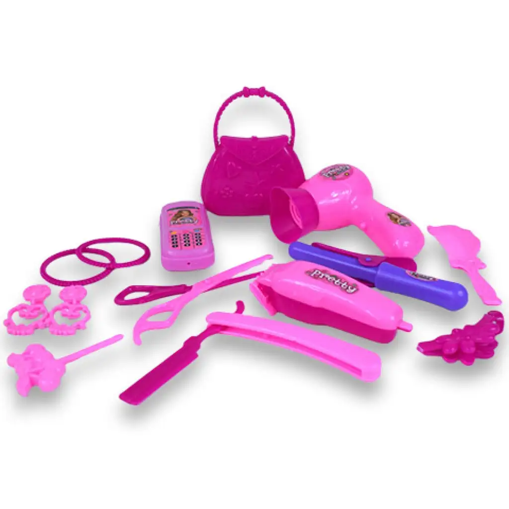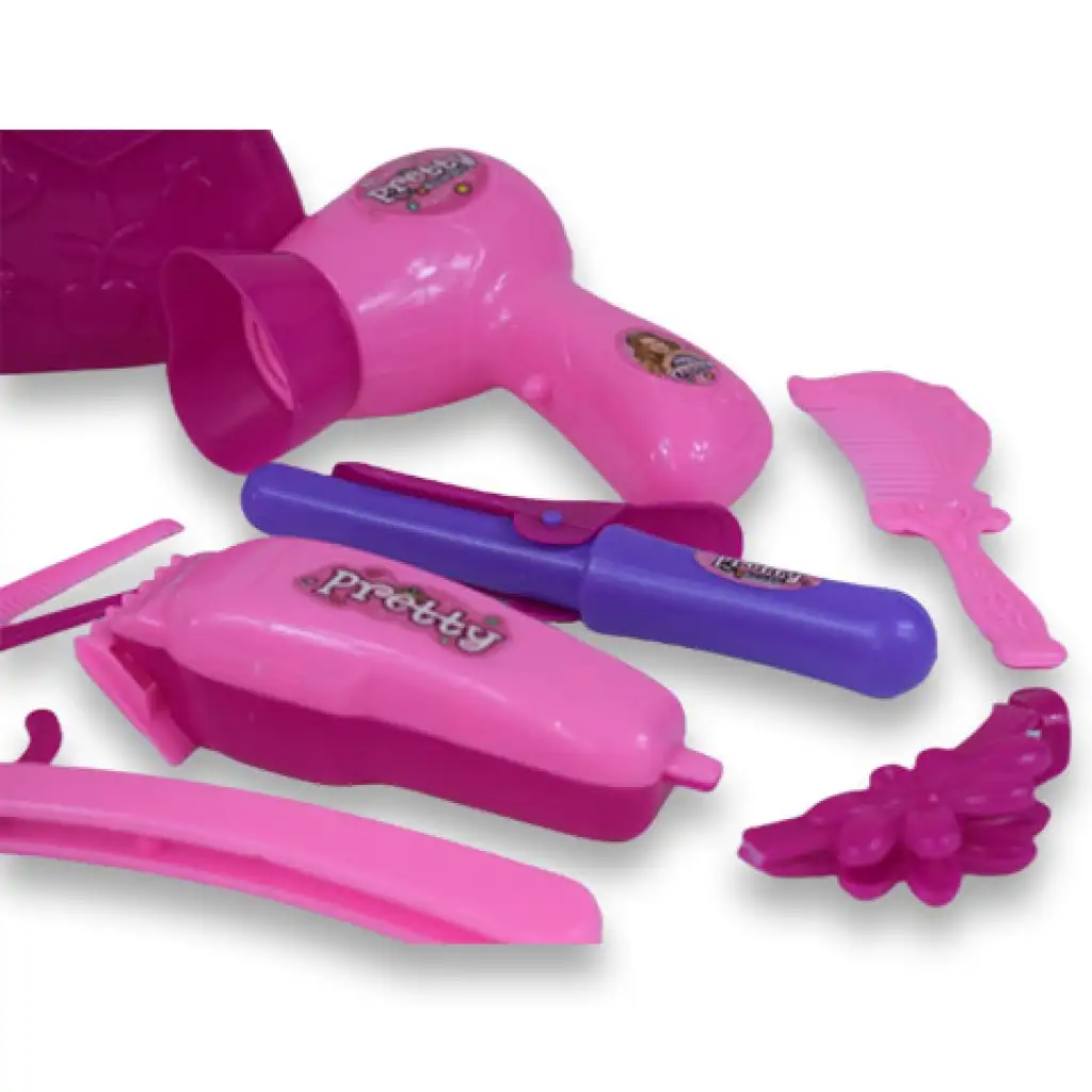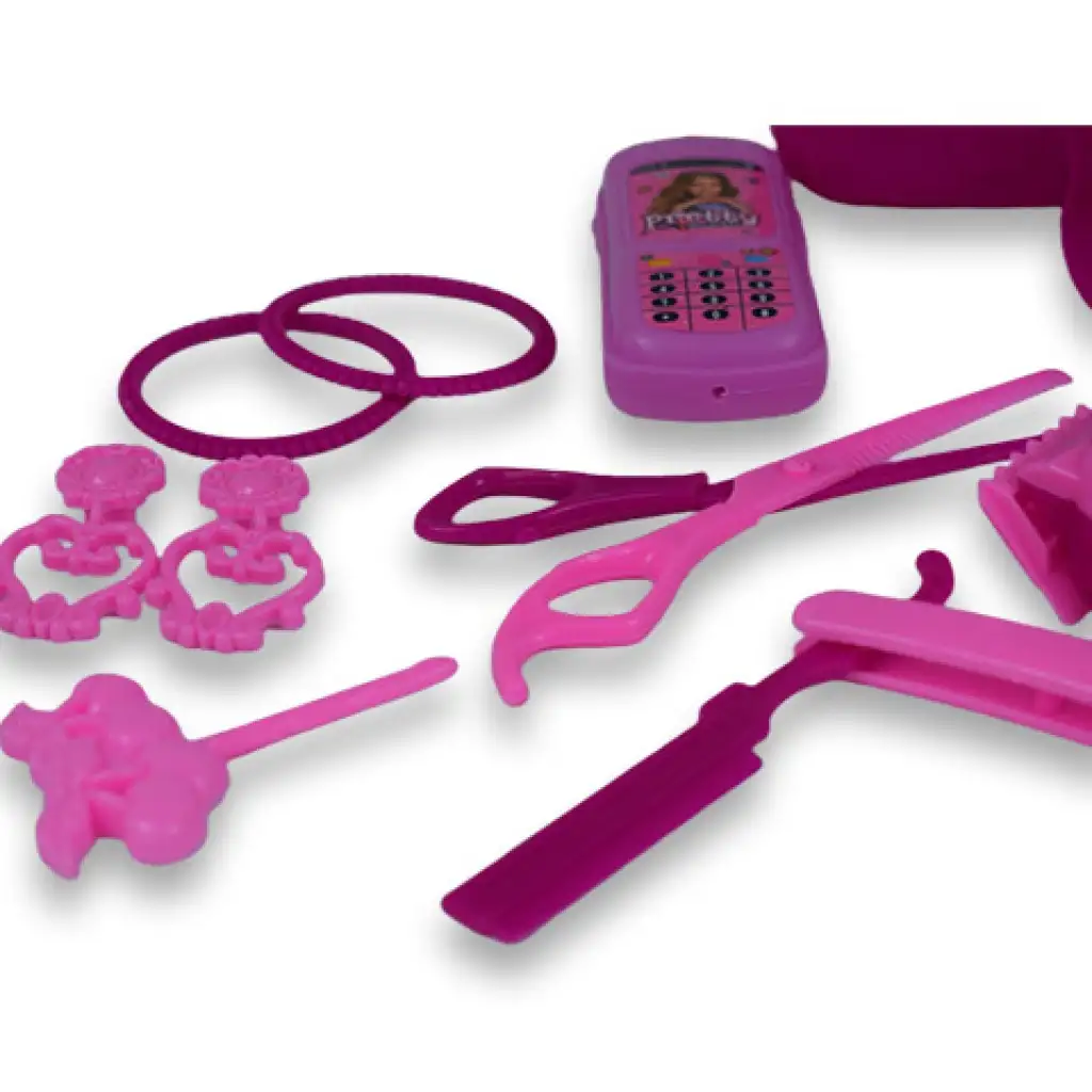 - z zabawkową suszarką, maszynką do strzyżenia i lokówką