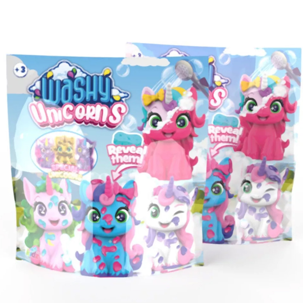 Saszetka-niespodzianka Washy Friends Color Reveal z jednorożcem do kąpieli to idealny wybór, jeśli Twoje dziecko uwielbia magiczne istoty i ekscytujące odkrycia. Mała saszetka kryje uroczą minifigurkę jednorożca, która na pierwszy rzut oka wydaje się „brudna”, ale podczas kąpieli odsłania swój prawdziwy, kolorowy i błyszczący wygląd. Dołączona mini szczoteczka i akcesoria sprawiają, że zabawa staje się jeszcze przyjemniejsza, a Twoje dziecko może opiekować się swoim małym pupilem. Figurka o wysokości ok. 6,8 cm jest idealna do zabawy i kolekcjonowania, ponadto dostępna w różnych wariantach, co czyni kolekcjonowanie jeszcze bardziej ekscytującym.