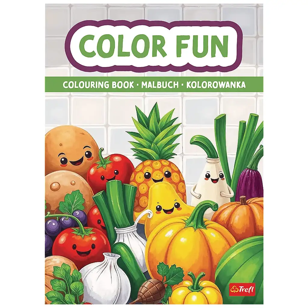 Wesoła kolorowanka z warzywami i owocami – TreflWesoła kolorowanka z warzywami i owocami – Trefl