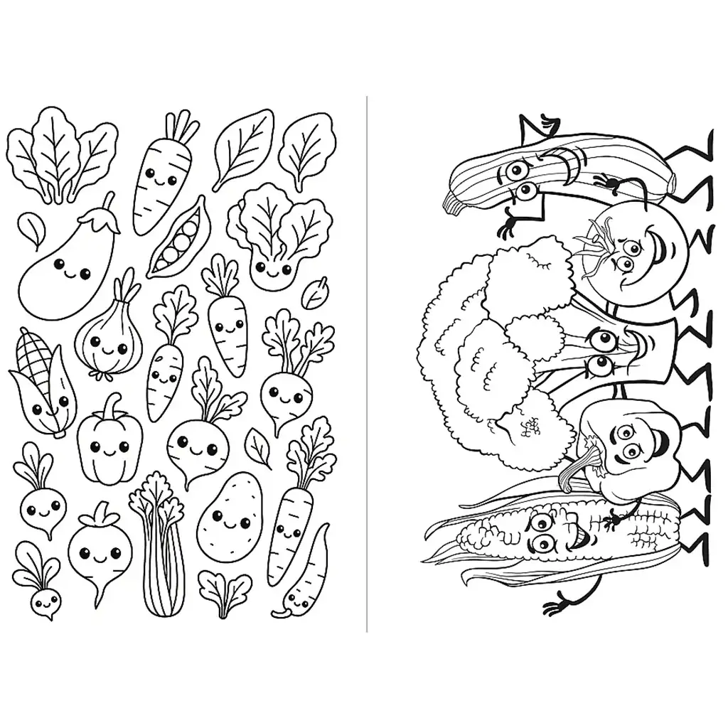 - Urocze, uśmiechnięte rysunki warzyw i owoców