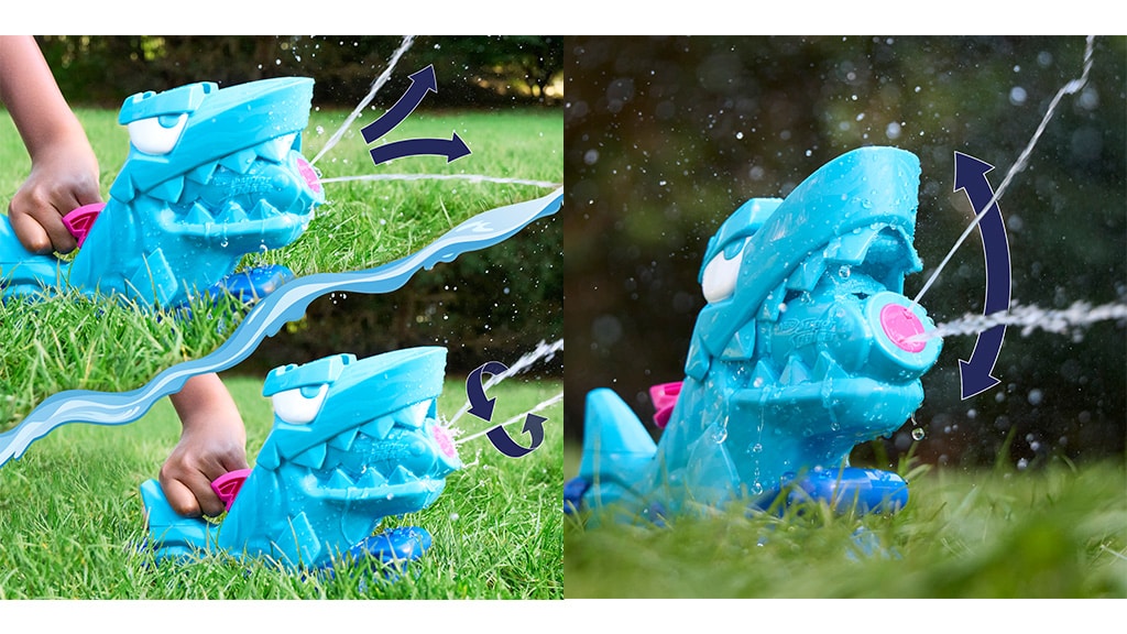 NERF Super Soaker Hop & Chomp to fantastyczna zabawka wodna dla dzieci od 3 roku życia. Wyjątkowość tej zabawki polega na tym, że posiada końcówkę w kształcie rekina, która strzela dwoma strumieniami wody z paszczy, wykonując przy tym ruchy gryzące, dzięki czemu wodna mgiełka pojawia się zawsze z zaskoczenia.