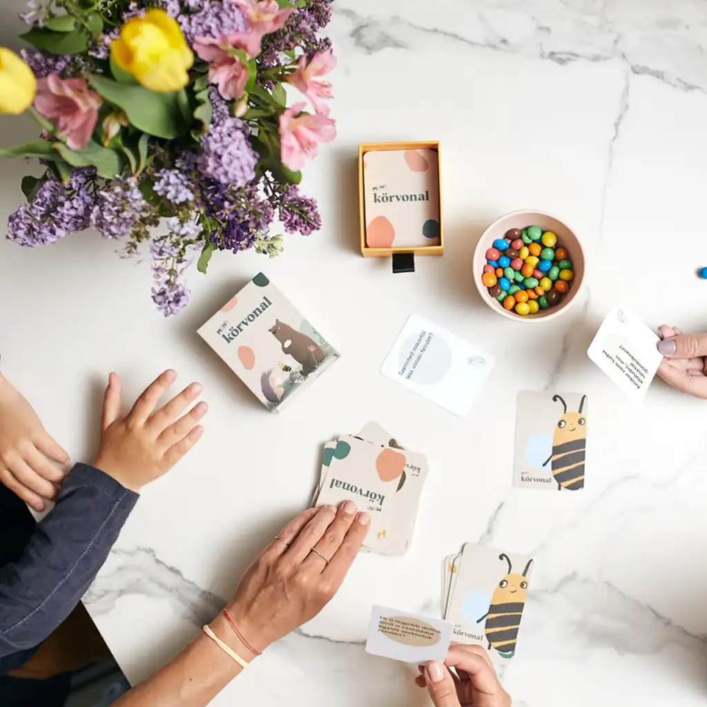 Körvonal Kids to naprawdę wyjątkowa gra karciana, która stawia w centrum świat dzieci – pomagając jednocześnie Wam, rodzicom, lepiej ich poznać i zrozumieć. Ta gra do rozpoczynania rozmów to nie tylko zabawna rozrywka, ale także okazja, aby w codziennym pośpiechu poświęcić sobie nawzajem prawdziwą uwagę.
