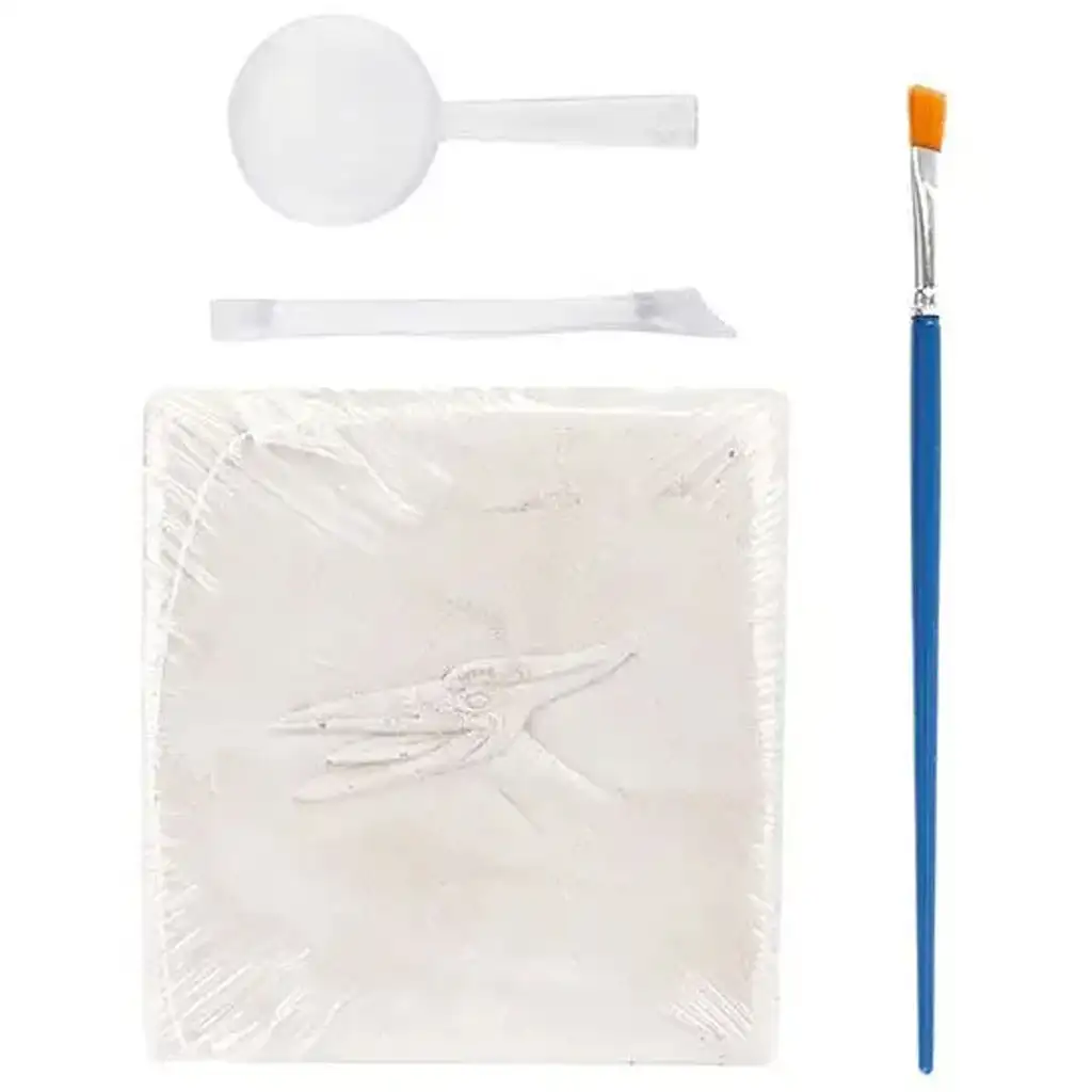 W zestawie znajduje się wszystko, co potrzebne: pędzelek, dłuto i lupa, dzięki którym dzieci mogą precyzyjnie, krok po kroku odkrywać ukryte kości. Po wykopaliskach z elementów można złożyć trójwymiarowy model dinozaura, który później z dumą można postawić na półce. Każdy zestaw skrywa innego dinozaura – na przykład Tyranozaura Rexa, Stegazaura, Triceratopsa, Brachiozaura lub Pteranodona – dzięki czemu każdy egzemplarz to nowa odkrywcza przygoda!