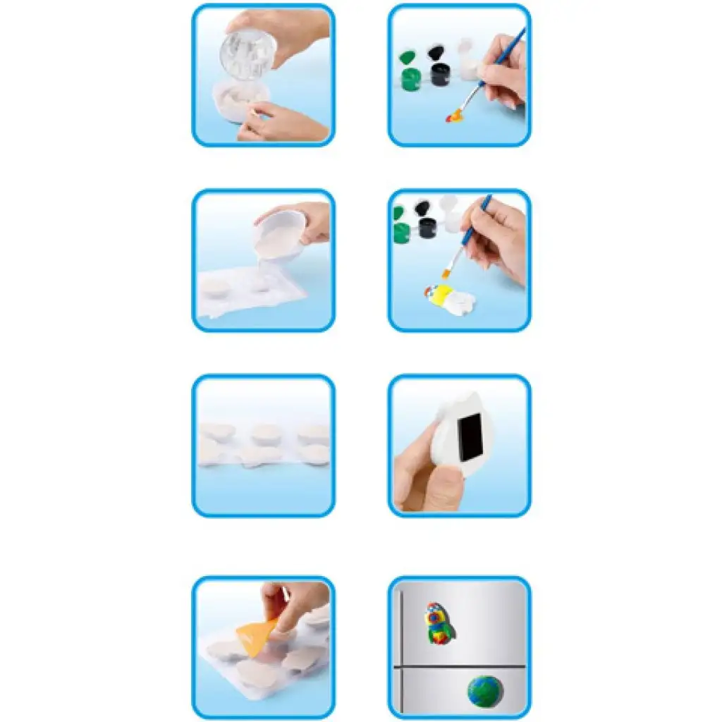 Ten zestaw do odlewania gipsu to fantastyczna propozycja dla miłośników podróży kosmicznych, aby mogli stworzyć własne planety, rakiety, statki kosmiczne i istoty pozaziemskie. Zestaw zawiera dwa woreczki wysokiej jakości gipsu, które umożliwiają dzieciom formowanie kształtów – wystarczy do tego jedynie odrobina wody. Dzięki foremkom dzieci mogą łatwo wykonać własne planety, rakiety, statki kosmiczne i kosmitów. Foremki są szczegółowo wykonane, co pozwala dzieciom skupić się na detalach i tworzyć staranne, bogate w szczegóły prace. Przy pomocy szpatułki i pojemniczka dzieci mogą łatwo wymieszać gips i bezpiecznie wlać go do form. Efektem jest twardy, stabilny kształt, który dzieci mogą dowolnie ozdabiać i malować – zestaw zawiera również pędzelek i farbki, aby dzieci mogły pokolorować gotowe figurki. Zestaw posiada także dodatkowy element – taśmę magnetyczną, która umożliwia dzieciom przyczepienie gotowych figurek do lodówki lub innych metalowych przedmiotów. Ten drobny dodatek sprawia, że zestaw do odlewania gipsu jest jeszcze ciekawszy i pozwala dzieciom cieszyć się swoją twórczością także po zakończeniu pracy.