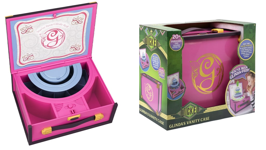 Ten zestaw do zabawy o tematyce Wicked otwiera się magicznym zdaniem, które odsłania ukryte schowki. Dzieci mogą używać lustra inspirowanego Glinda z napisem „You’ve Been Glinda-fied!” i przechowywać w nim biżuterię, akcesoria oraz inne drobiazgi w różnych miejscach.