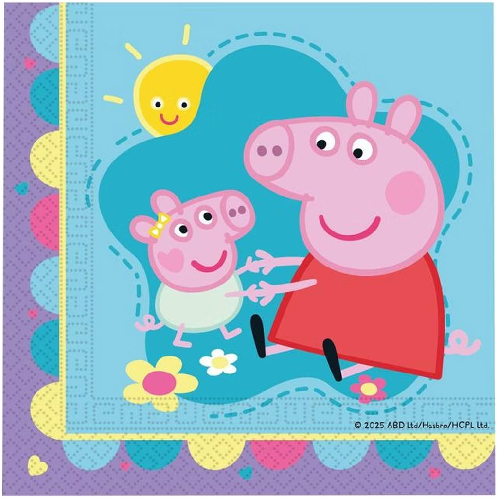 Spraw, aby urodzinowe przyjęcie twojego dziecka było jeszcze radośniejsze dzięki temu uroczemu zestawowi papierowych serwetek ze Świnką Peppą! Na serwetkach pojawiają się Peppa i jej przyjaciele w miłych, kolorowych wzorach, które od razu ożywią świąteczną atmosferę. To idealny wybór, jeśli chcesz, aby dekoracja stołu również pasowała do ulubionej przez dzieci bajki.